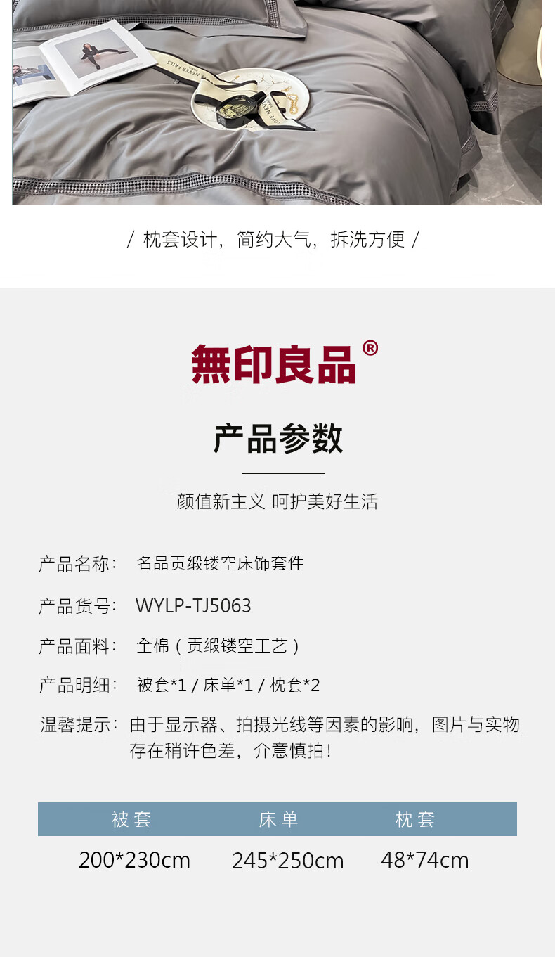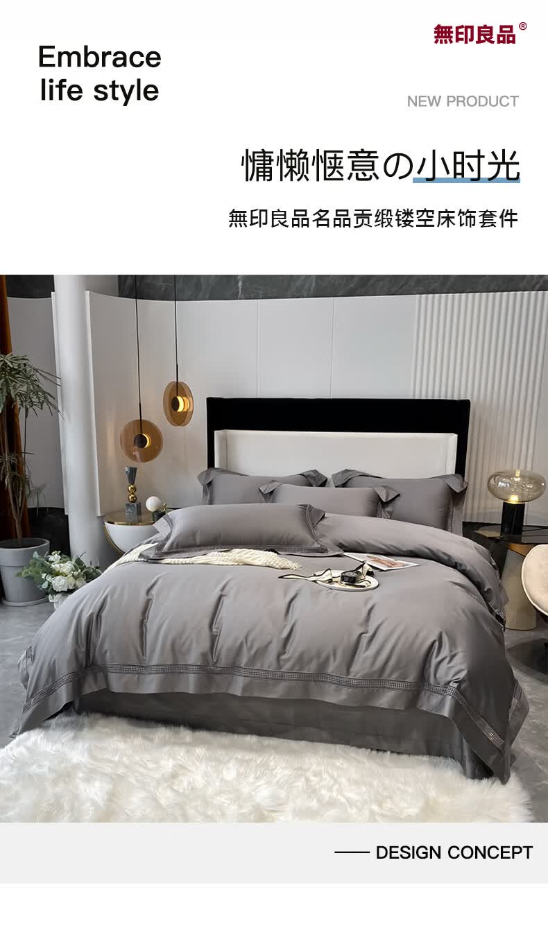 无印良品 無印良品名品贡缎镂空床饰套件
