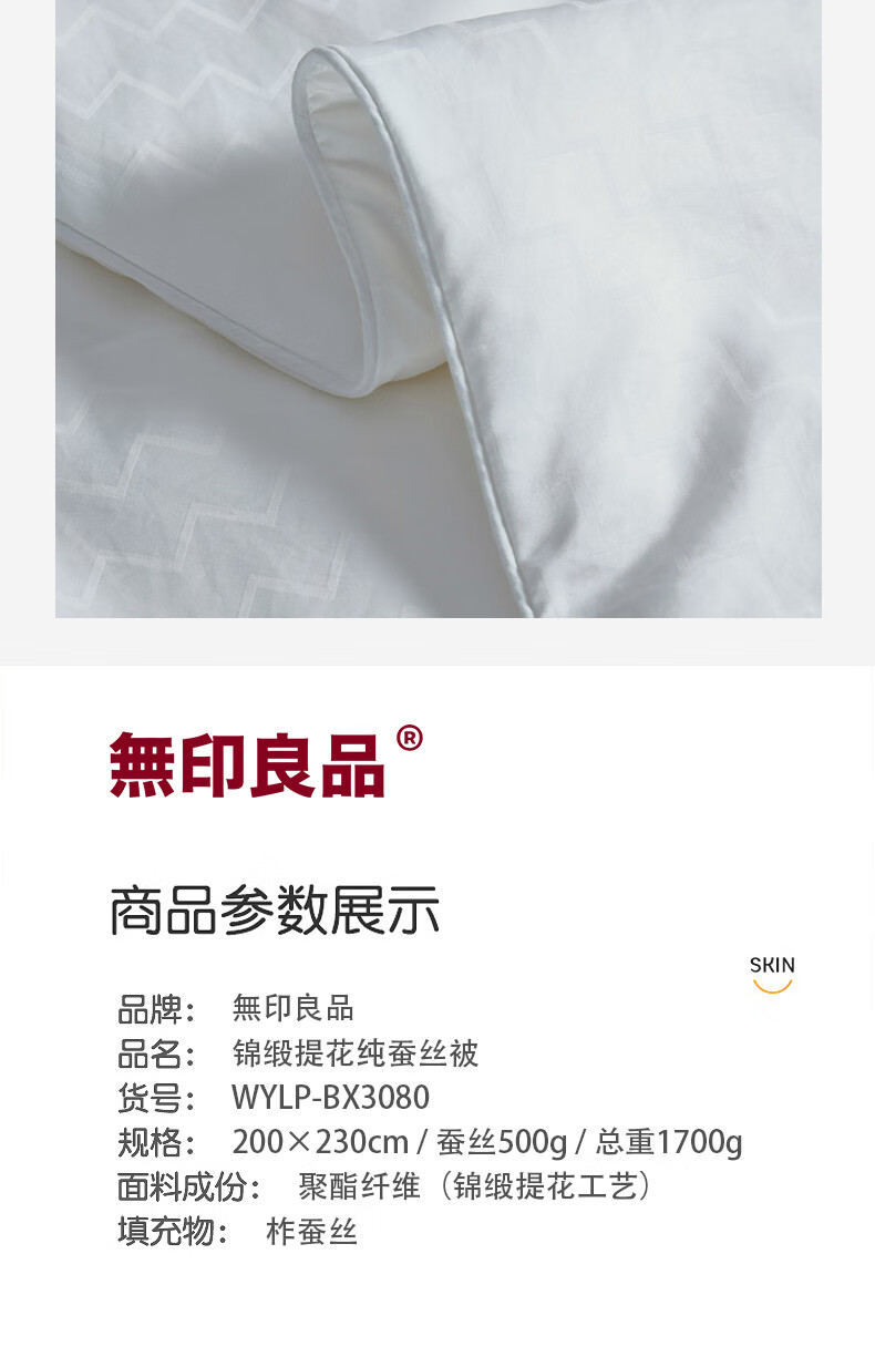 无印良品 無印锦缎提花纯蚕丝被