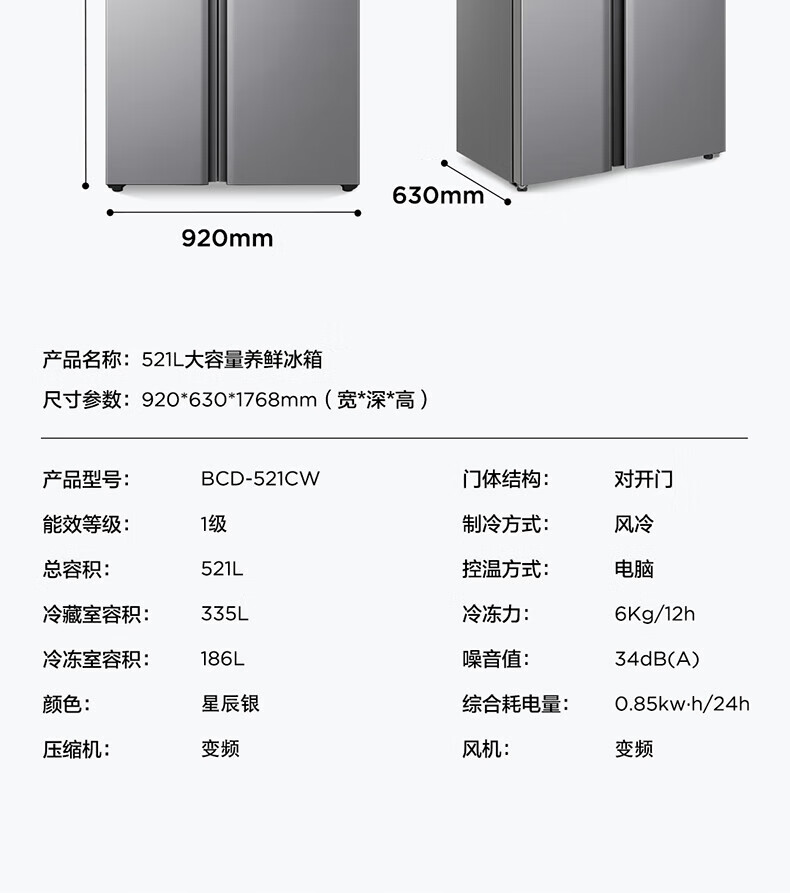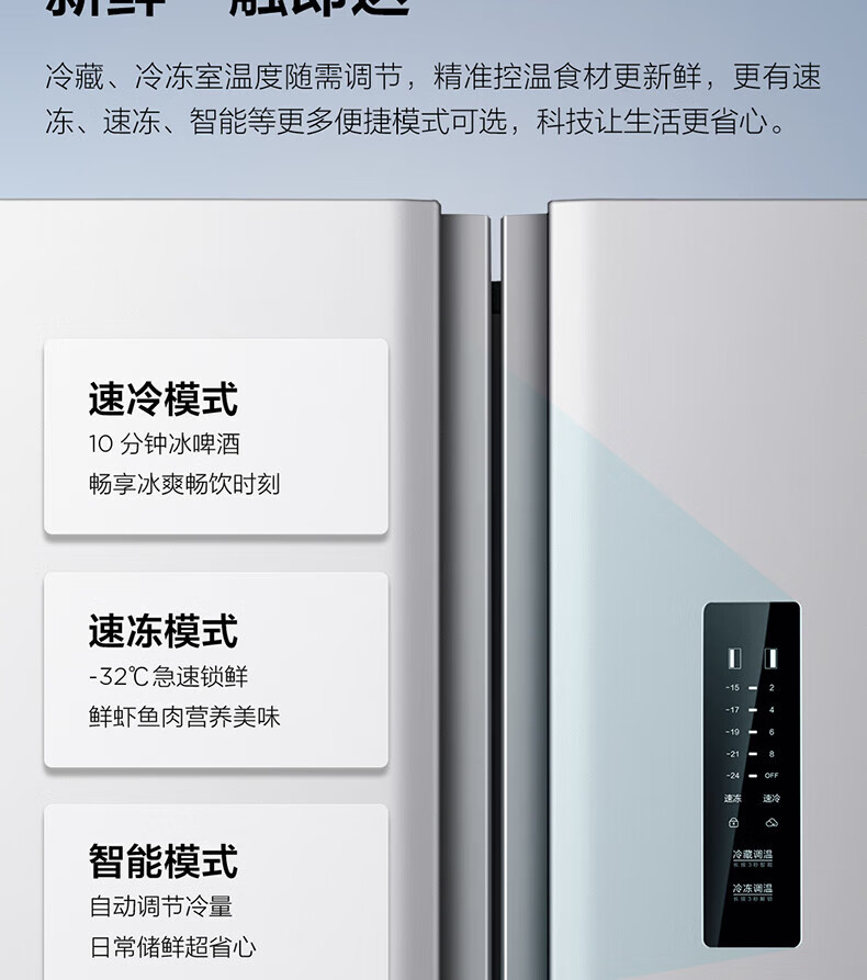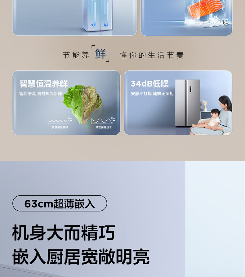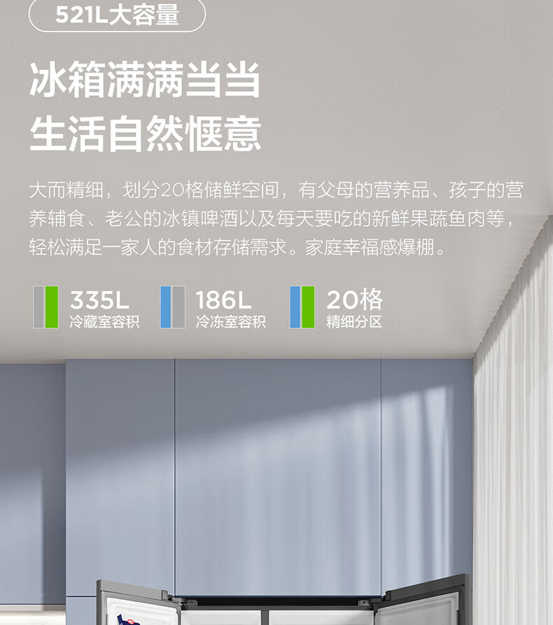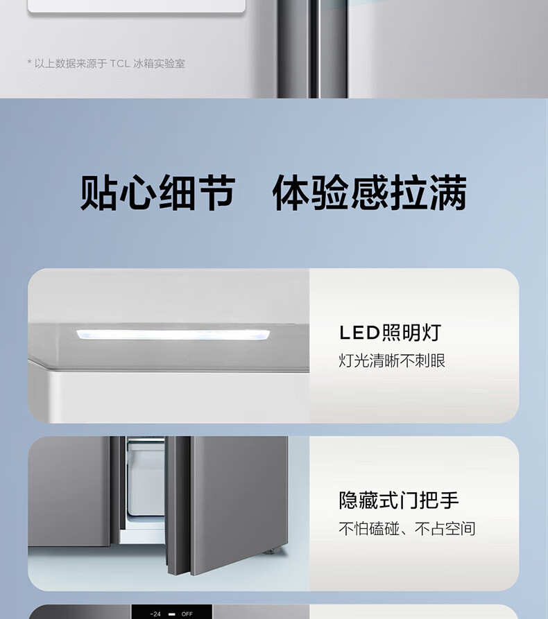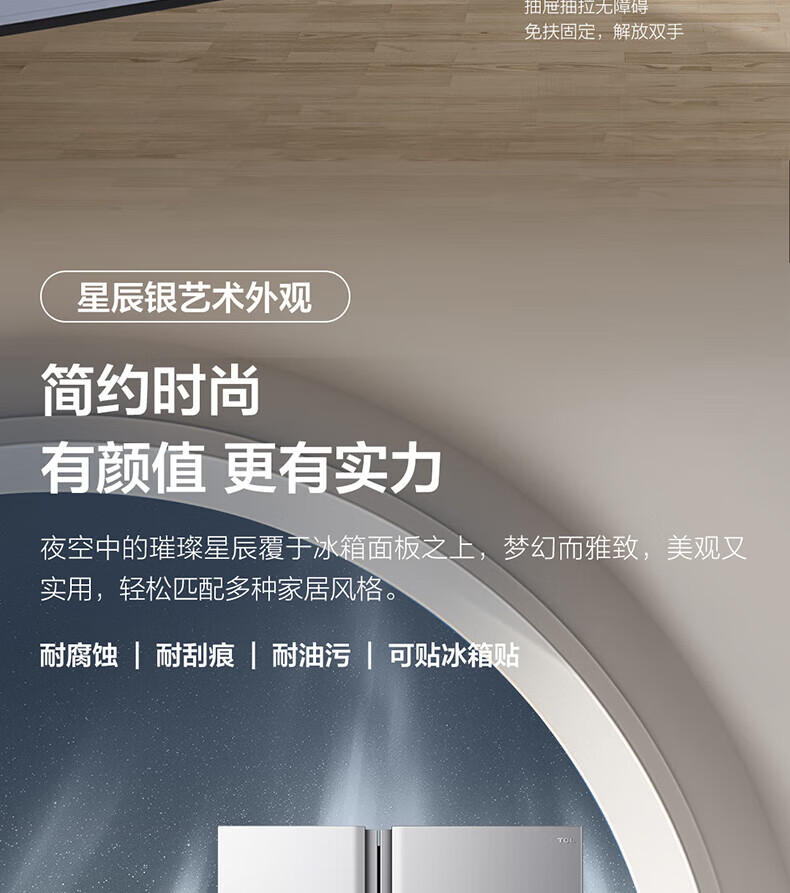 变频风冷技术,TCL冰箱保鲜更出色;一级能效标准,TCL冰箱节能又省电;智能控温系统,TCL冰箱精准保鲜