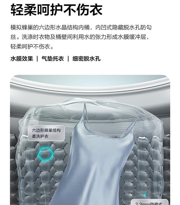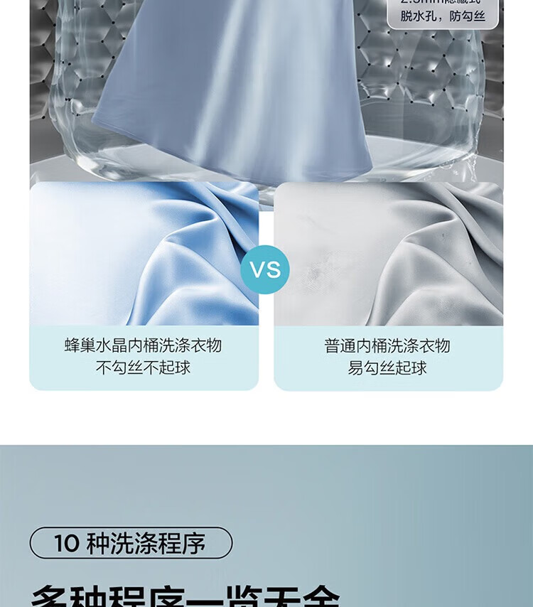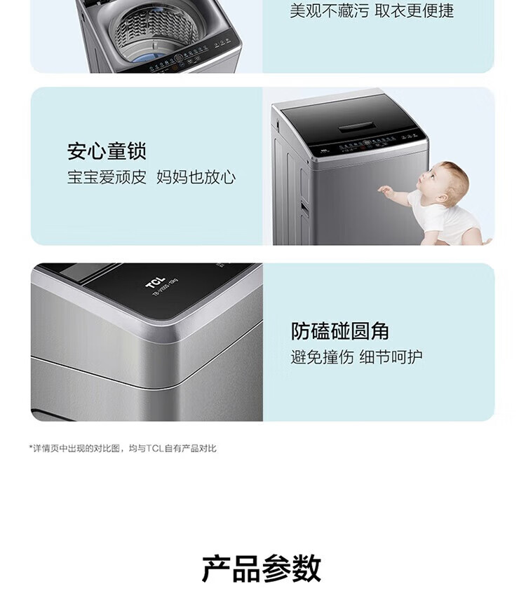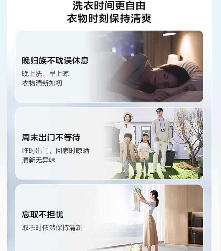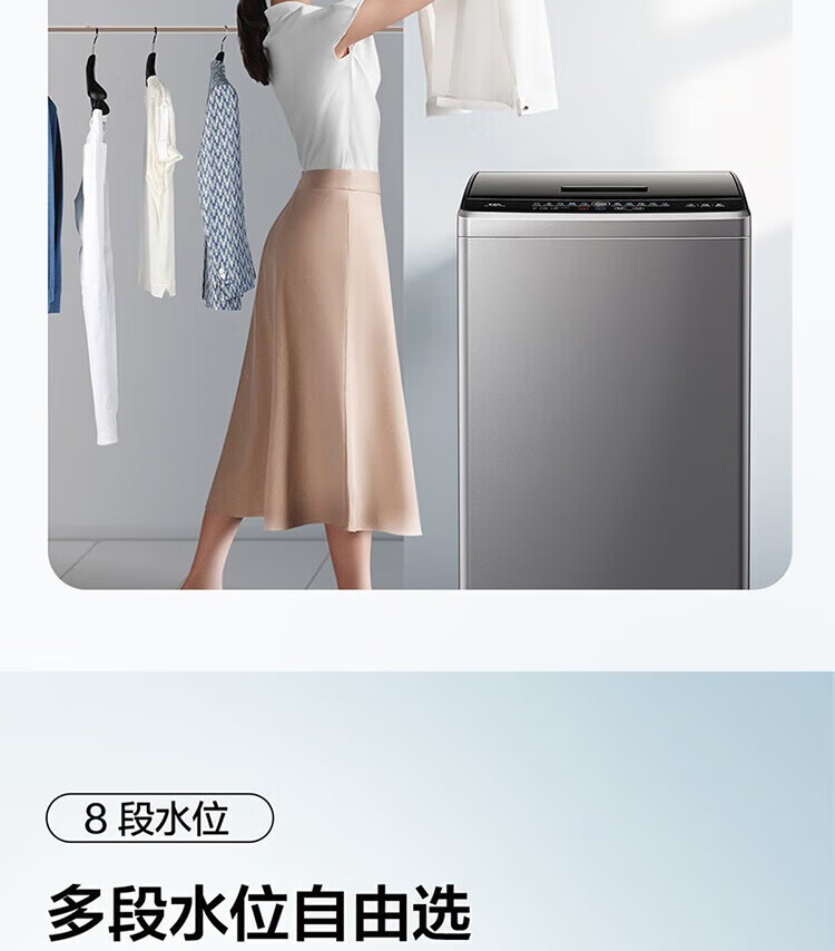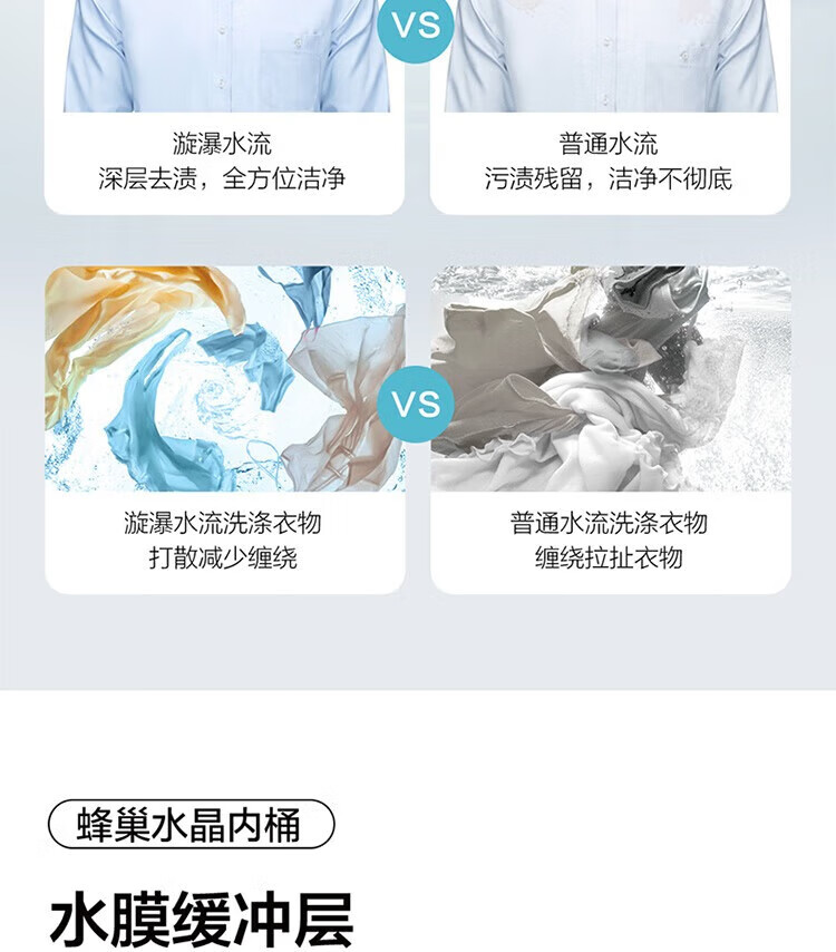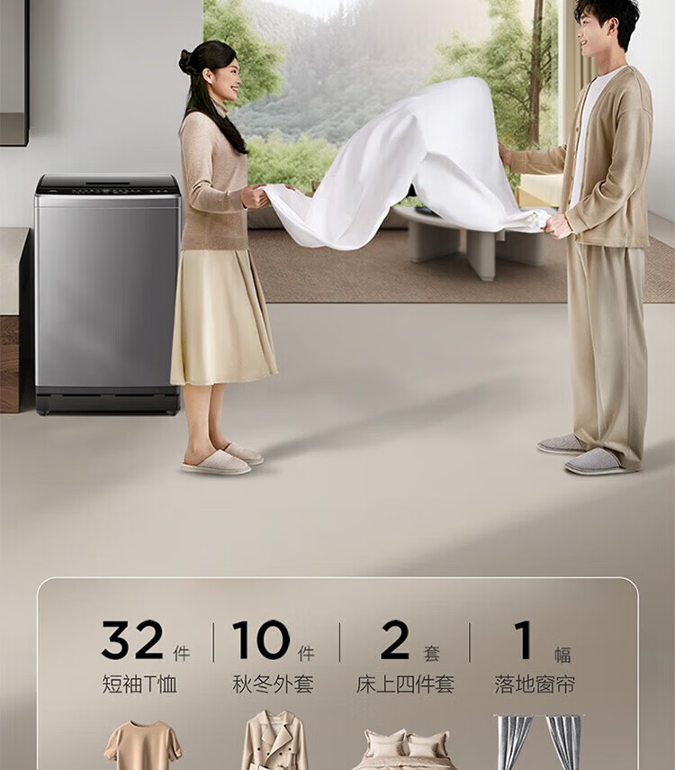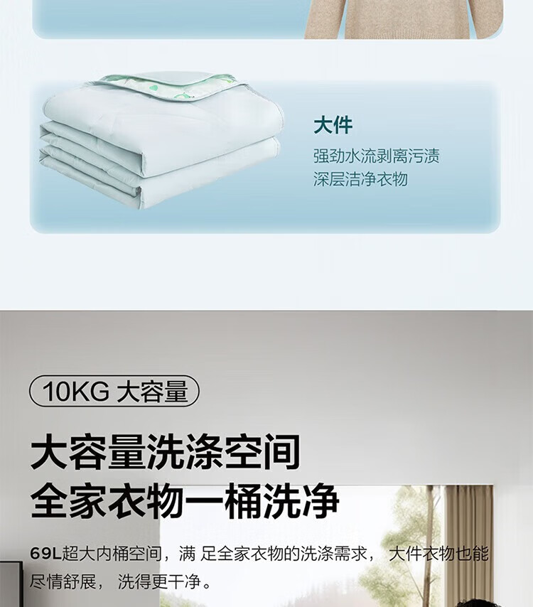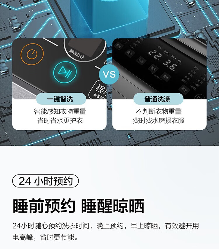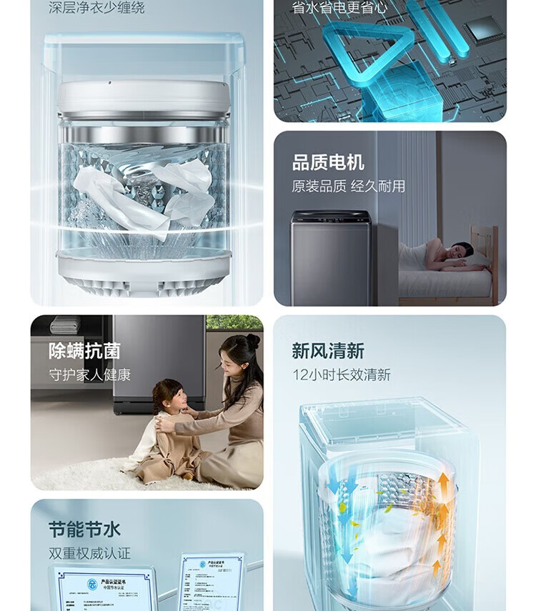 强劲动力高效去污,洗净衣物超轻松;节能省水又环保,长期使用更划算;简约外观超百搭,轻松融入家居环境