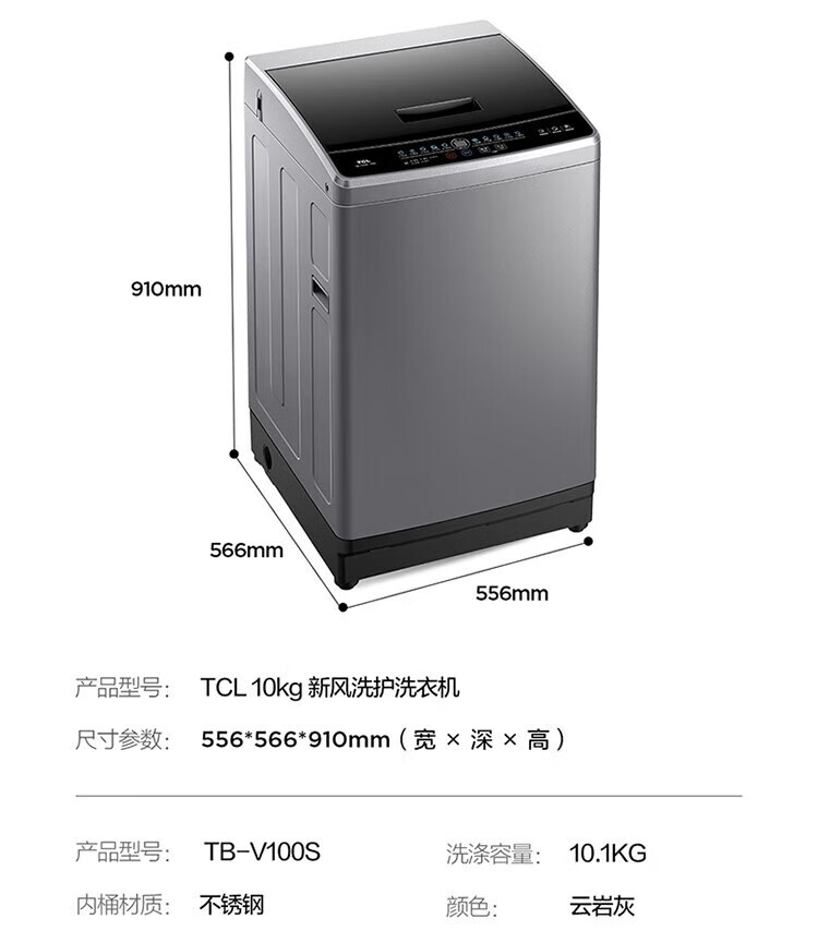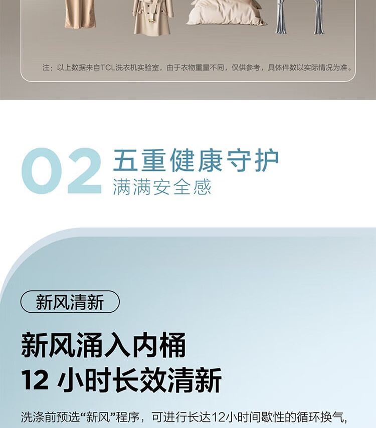 TCL 10kg新风洗护洗衣机波轮