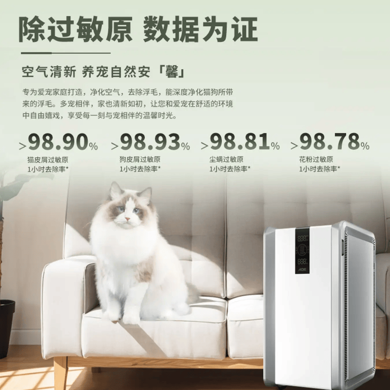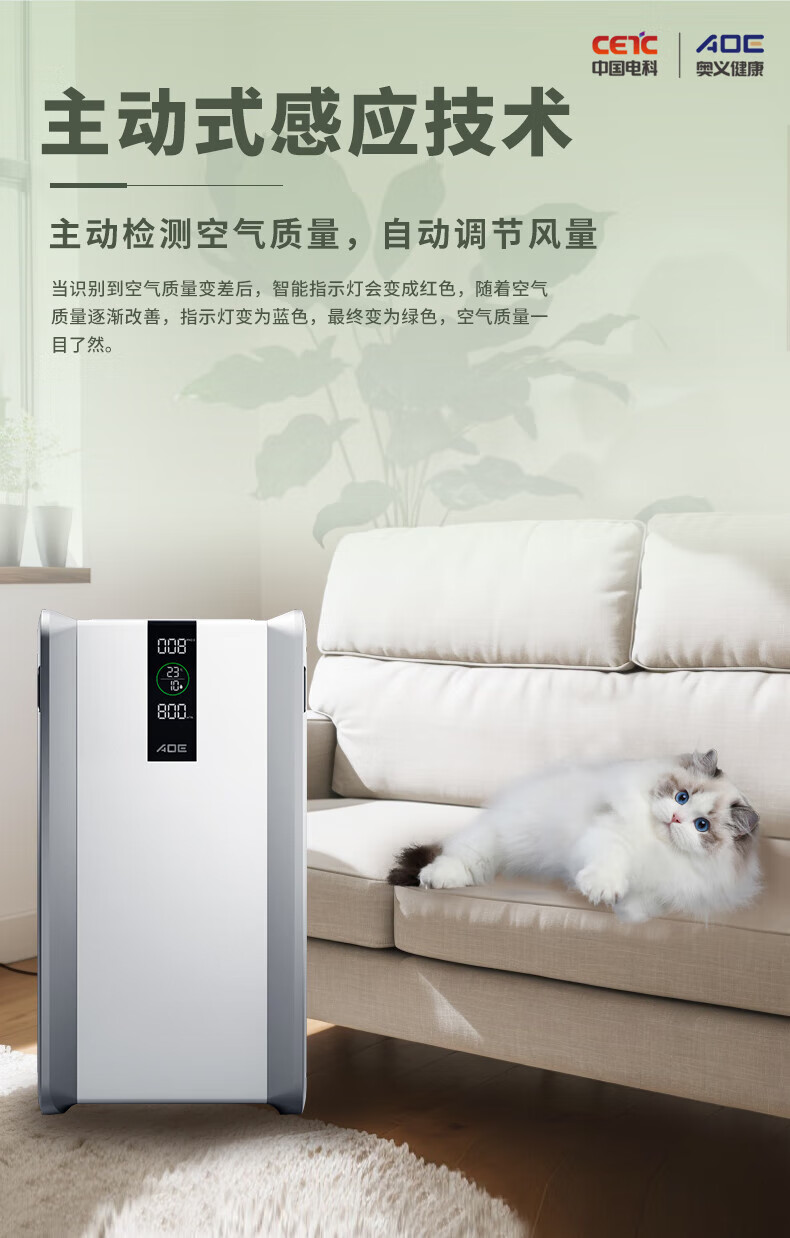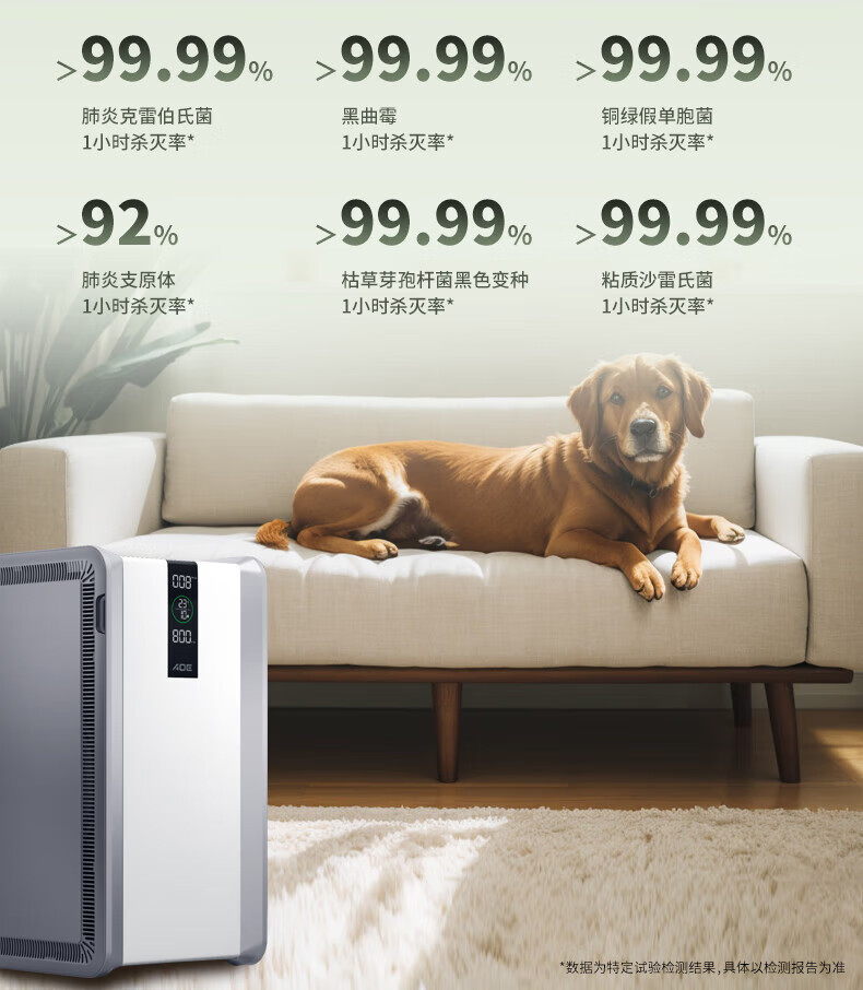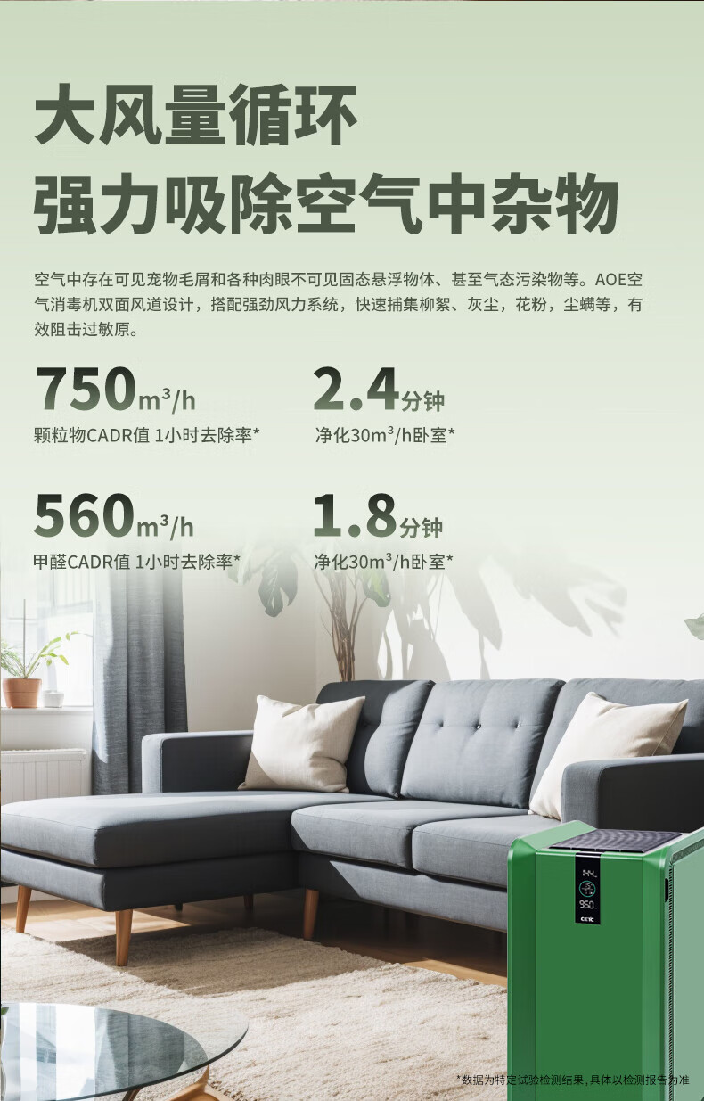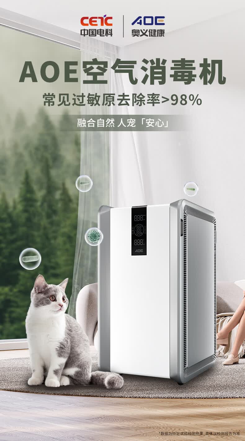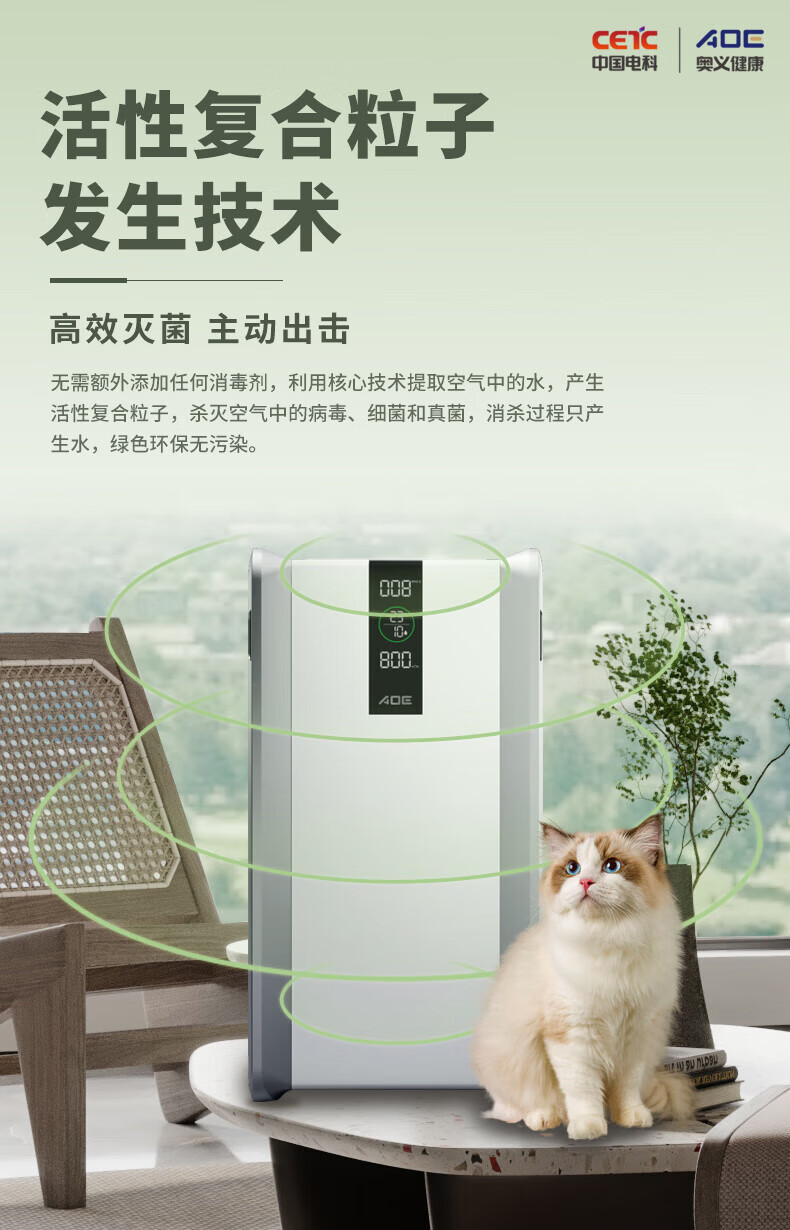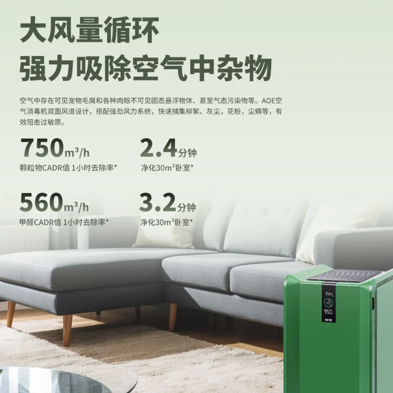 AOE 空气消毒机空气净化器除甲醛异味活性复合粒子冠状消毒钛灰色【适用80平】