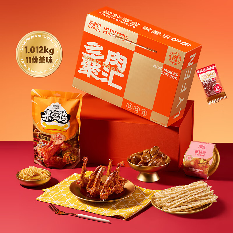 来伊份多肉鸿运礼,1012g超足分量;精选多肉零食,口感丰富超满足;鸿运主题包装,送礼自用皆相宜;多样美味组合,一次畅享多滋味;来伊份大品牌,品质放心有保障