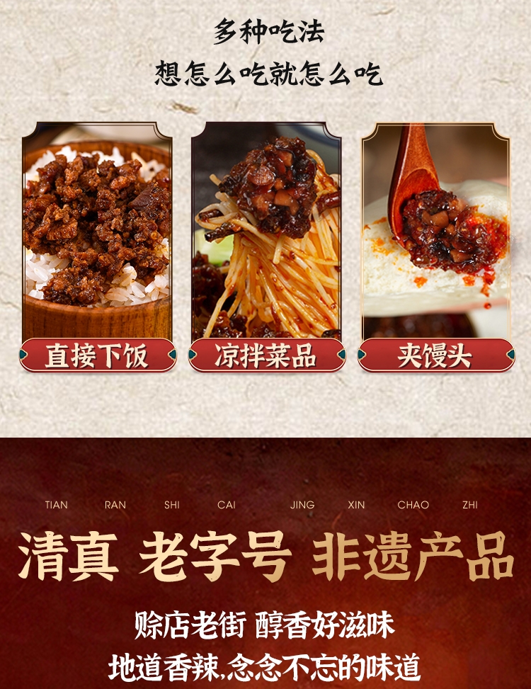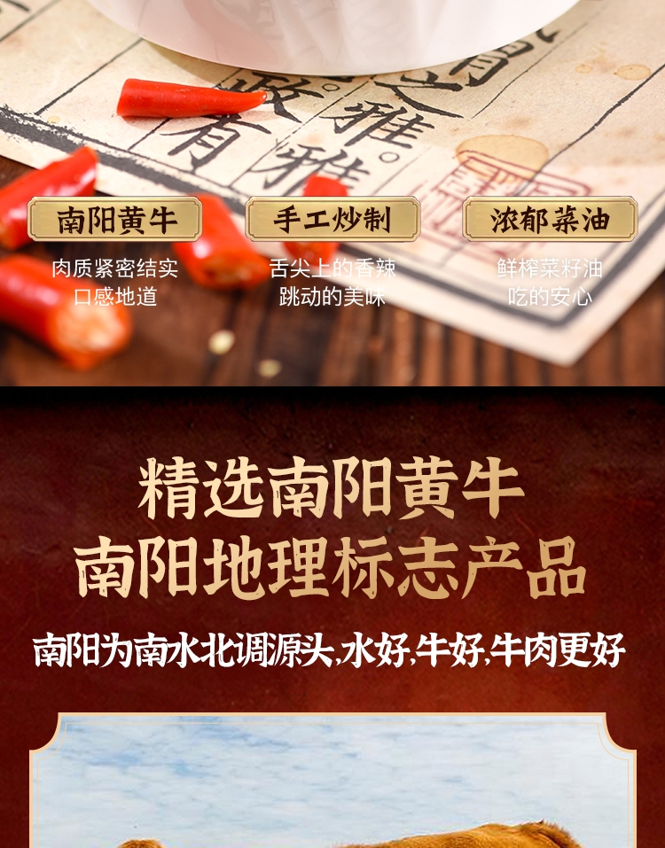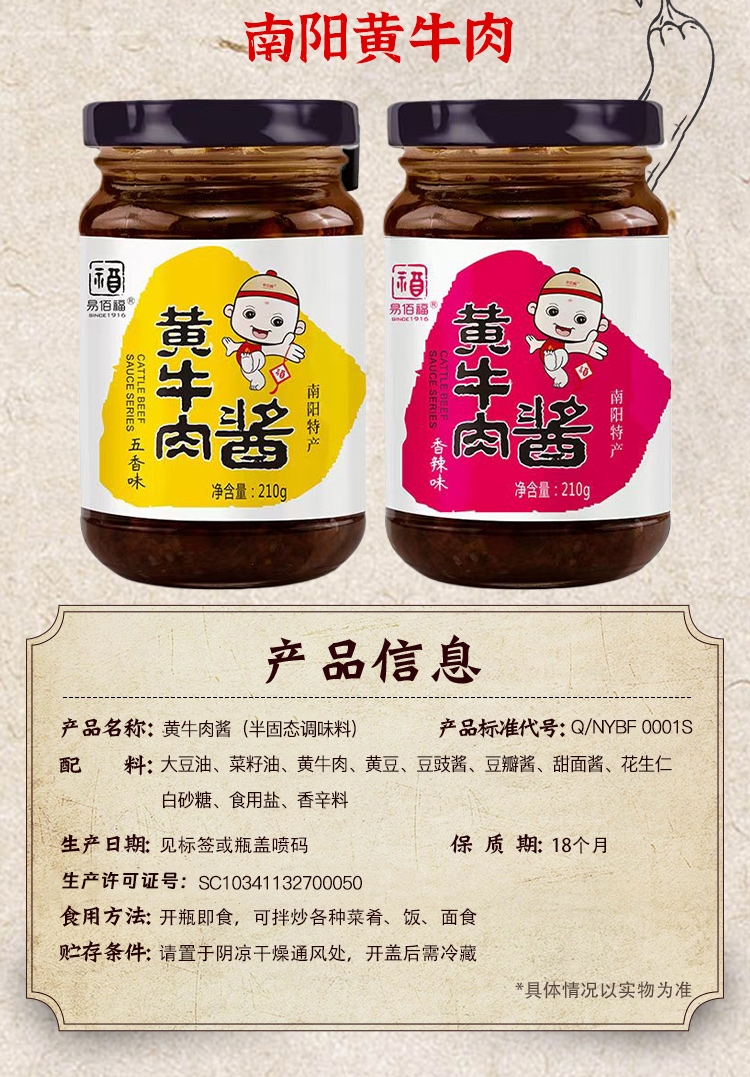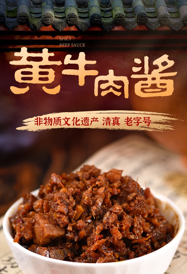 清真食品;河南老字号;南阳非物质文化遗产牛肉酱;精选南阳黄牛,厚切大块牛肉,粒粒分明