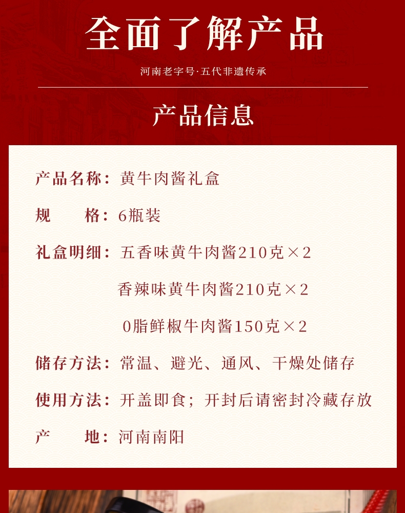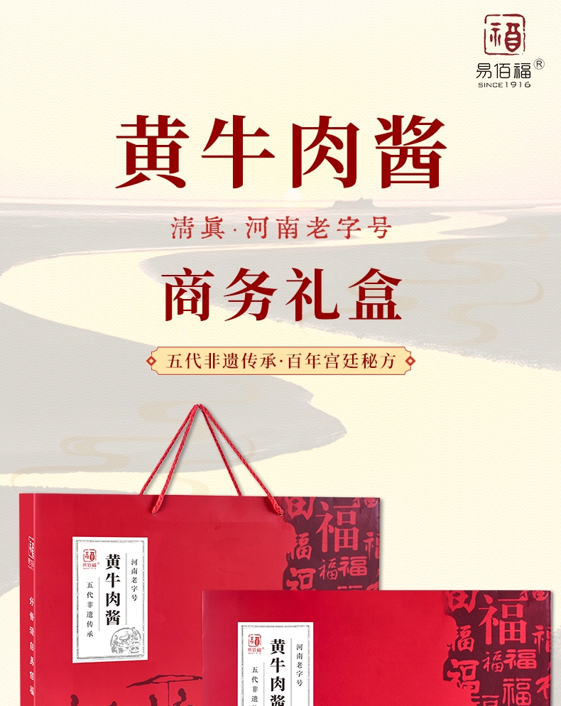 易佰福 河南老字号河南特产清真认证百年非遗传承牛肉酱礼盒