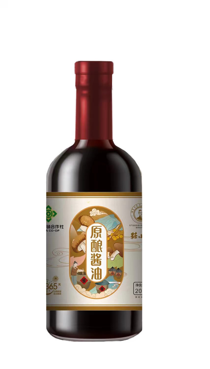 采用菌菇古法酿造工艺;365天日晒夜露原酿酱油
