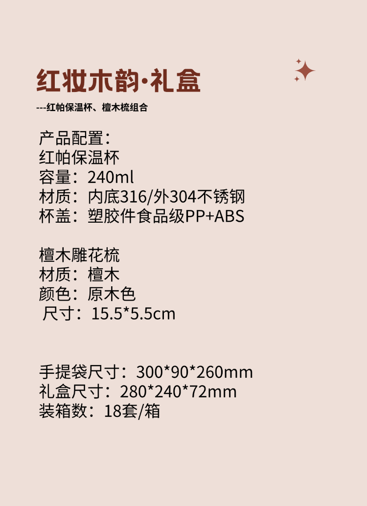 配置清单:口红保温杯*1,檀木梳*1