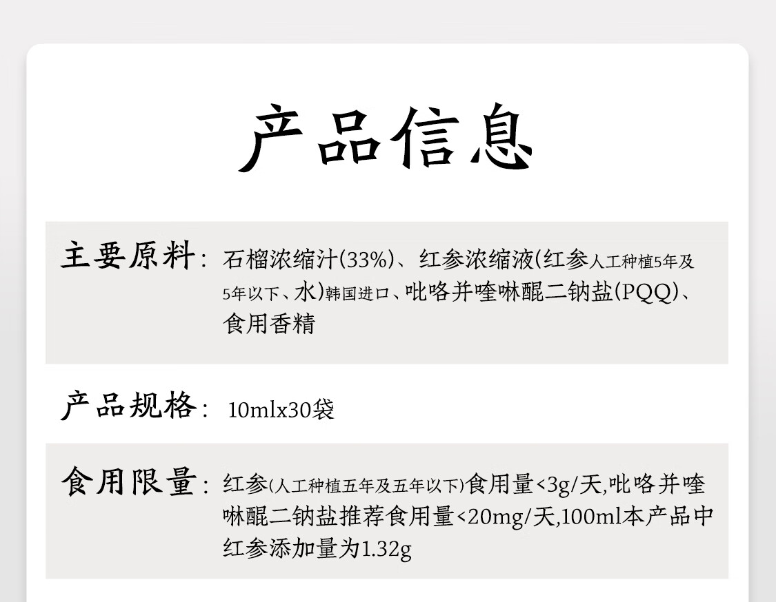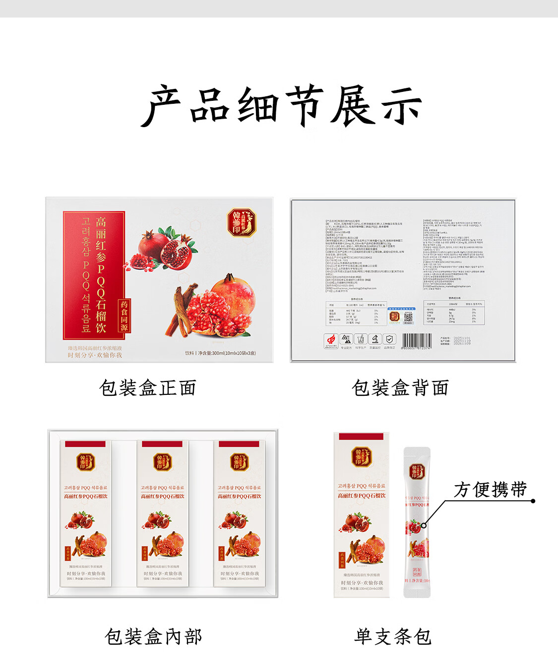 韩参印 ·高丽红参PQQ石榴饮(10ml*10*3)
