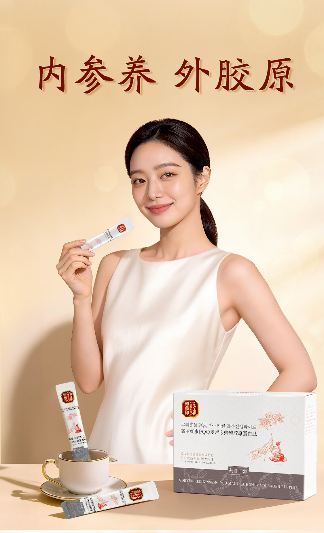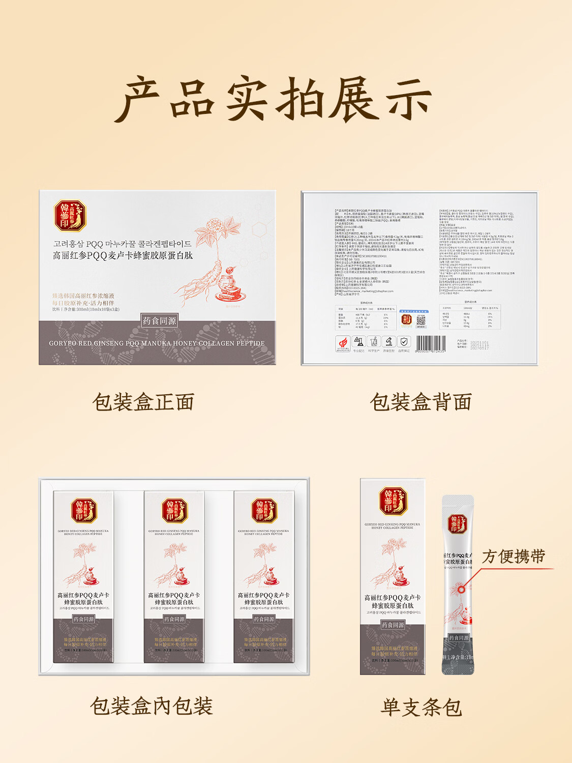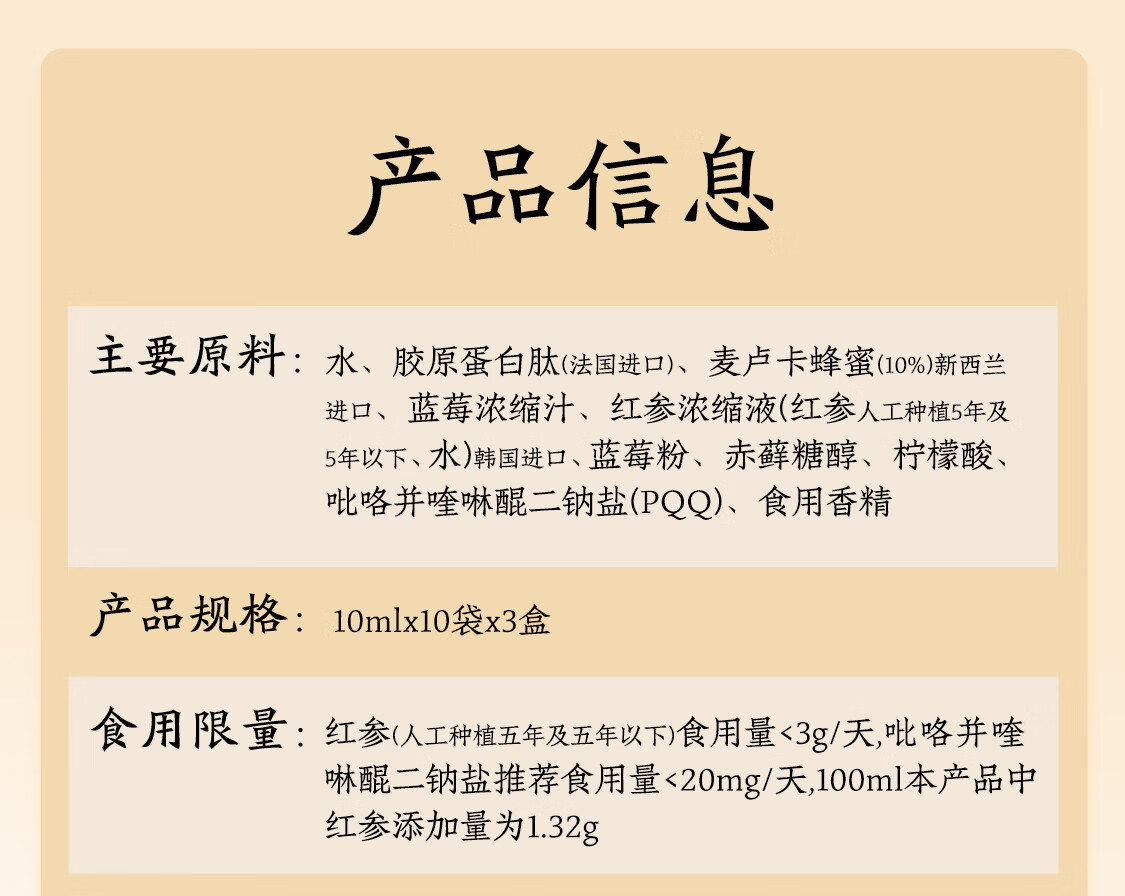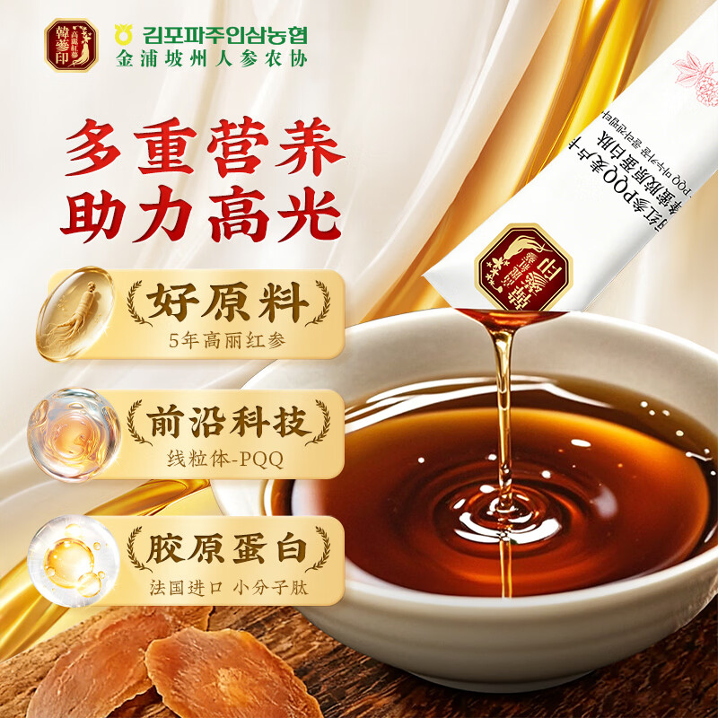 韩参印 ·高丽红参PQQ麦卢卡蜂蜜胶原蛋白肽(10ml*10*3)