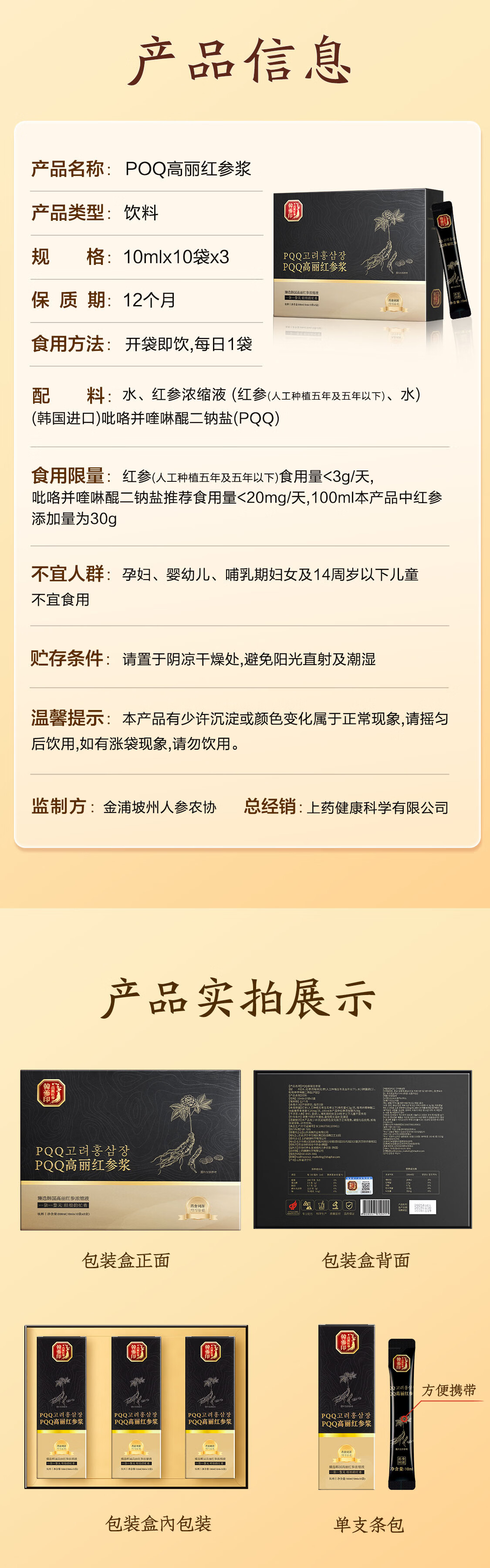 韩参印 ·PQQ高丽红参浆(10ml*10*3)