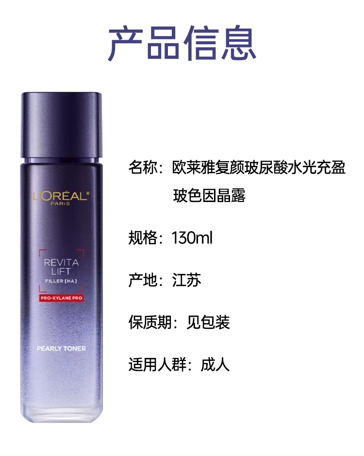 产品(注册/备案)名称:欧莱雅复颜玻尿酸水光充盈玻色因晶露