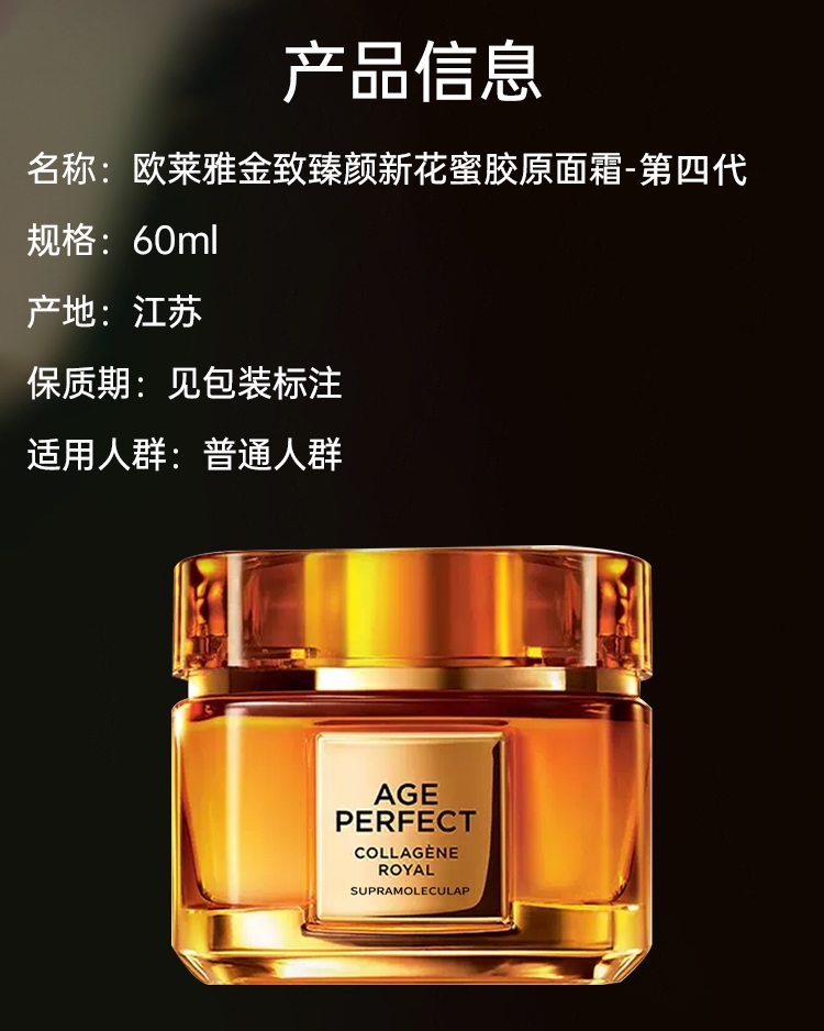 产品(注册/备案)名称:欧莱雅金致臻颜花蜜胶原滋润霜