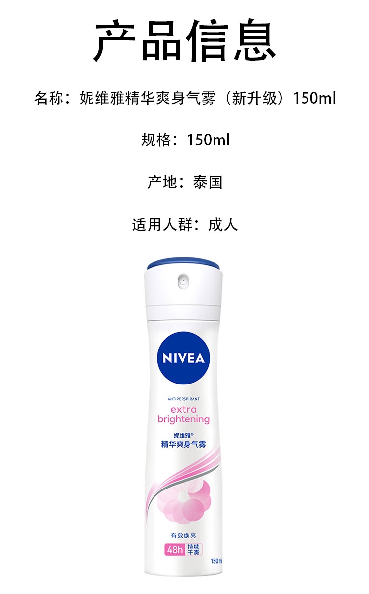 妮维雅 精华爽身气雾150ml爽身腋下抑汗喷雾止汗露