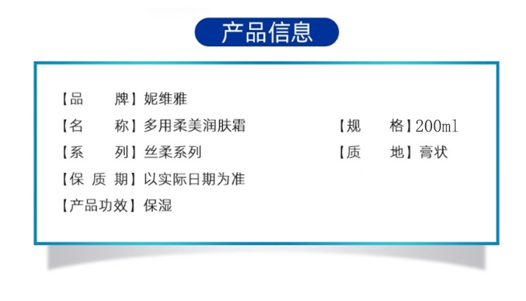 产品(注册/备案)名称:妮维雅多用柔美润肤霜