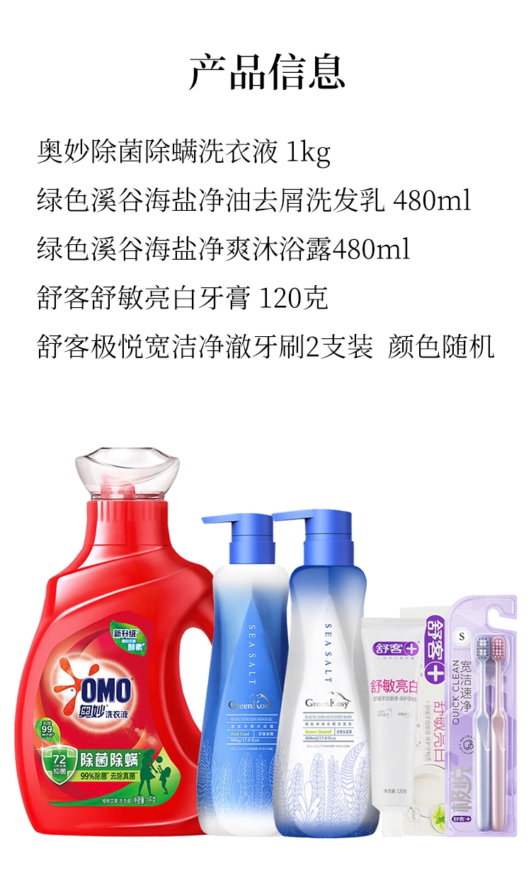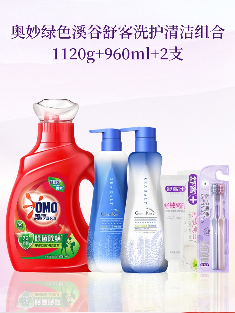 绿色溪谷 奥妙舒客洗护清洁组合1120g+960ml+2支