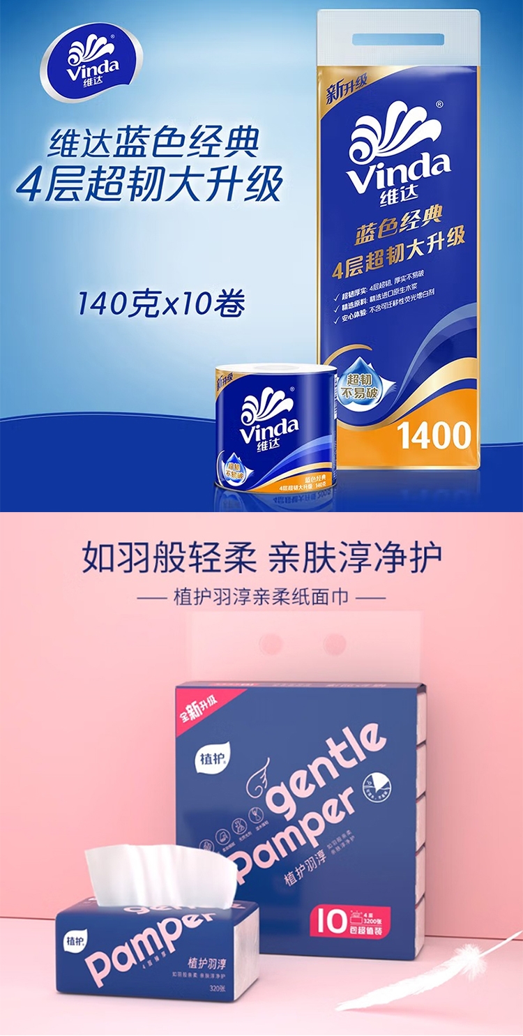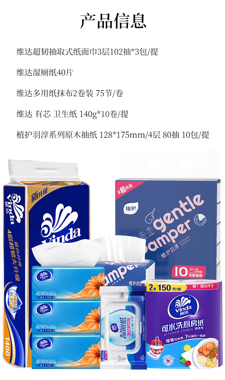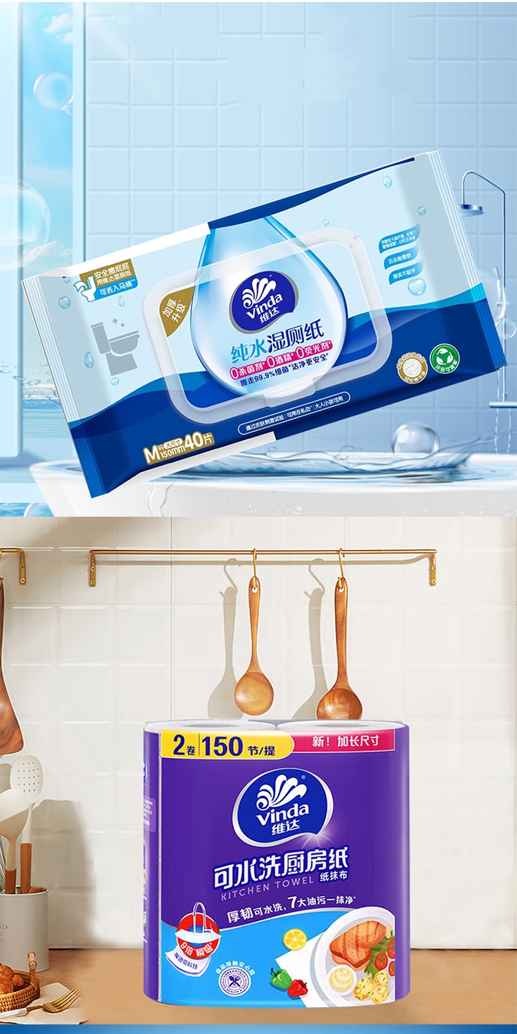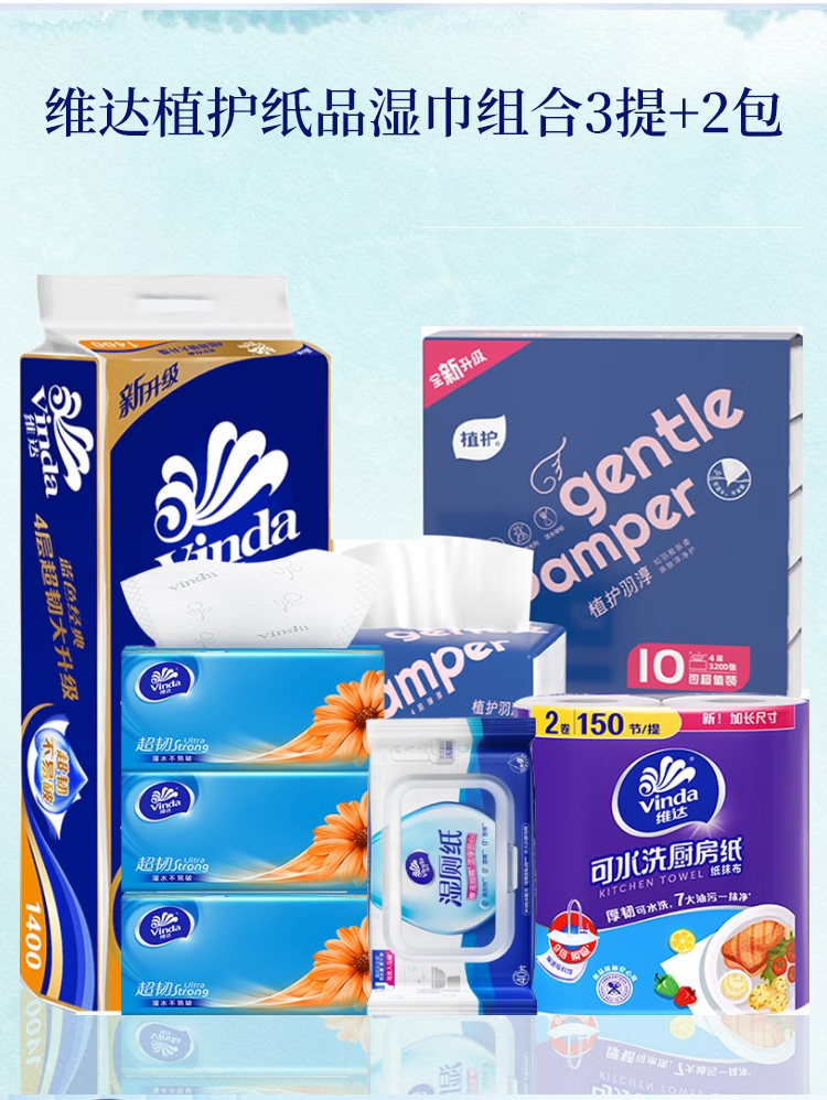 维达 植护纸品湿巾组合3提+2包