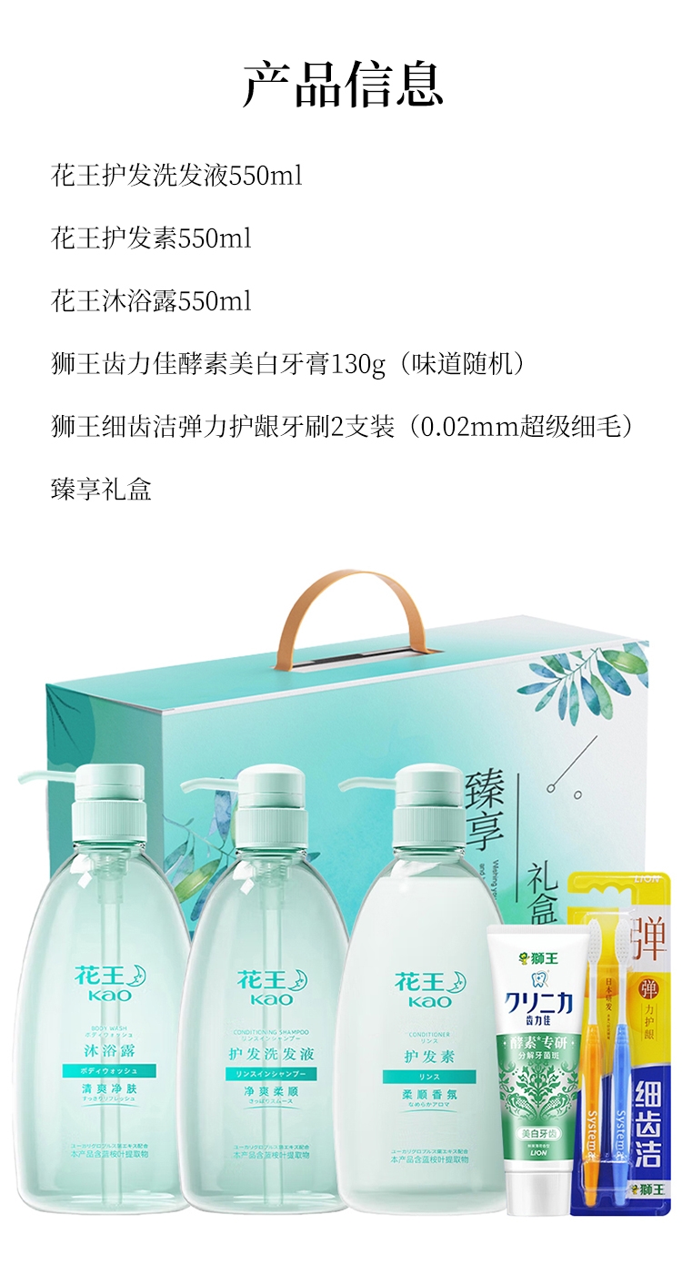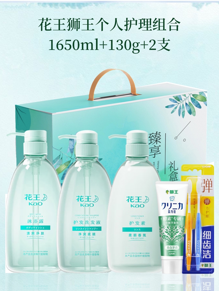 花王 狮王个人护理组合1650ml+130g+2支