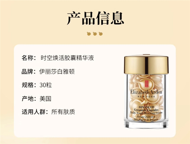 伊丽莎白雅顿 轻感金胶时空焕活清透修护精华液14ml约30粒