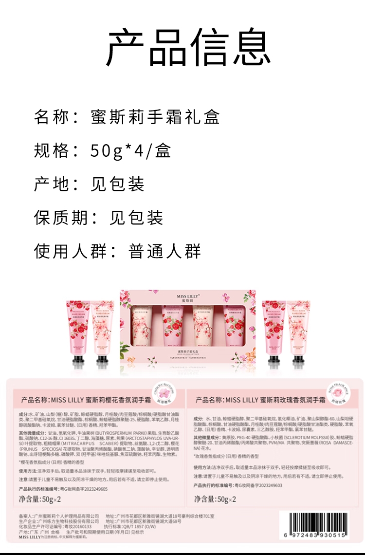 蜜斯莉 香氛润护手霜套装礼盒伴手礼50g*4