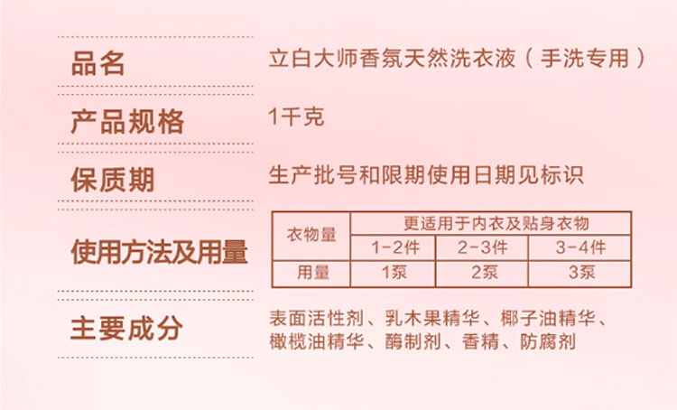 立白 大师香氛天然洗衣液1千克手洗专用