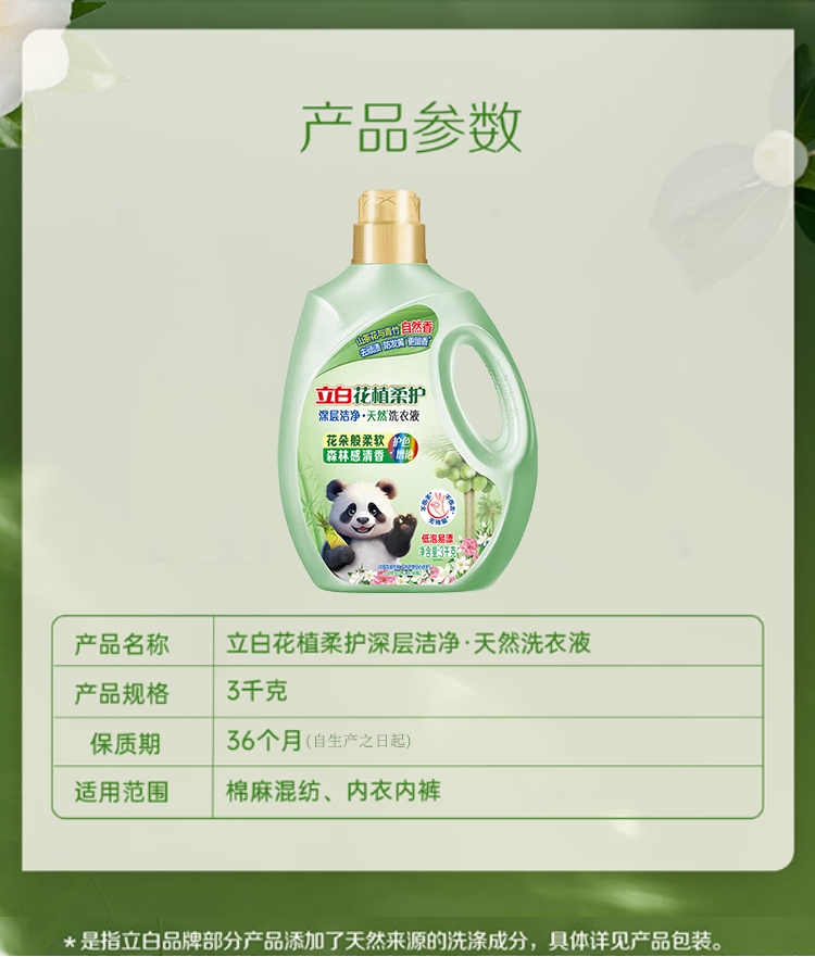 立白 花植柔护深层洁净天然洗衣液3千克