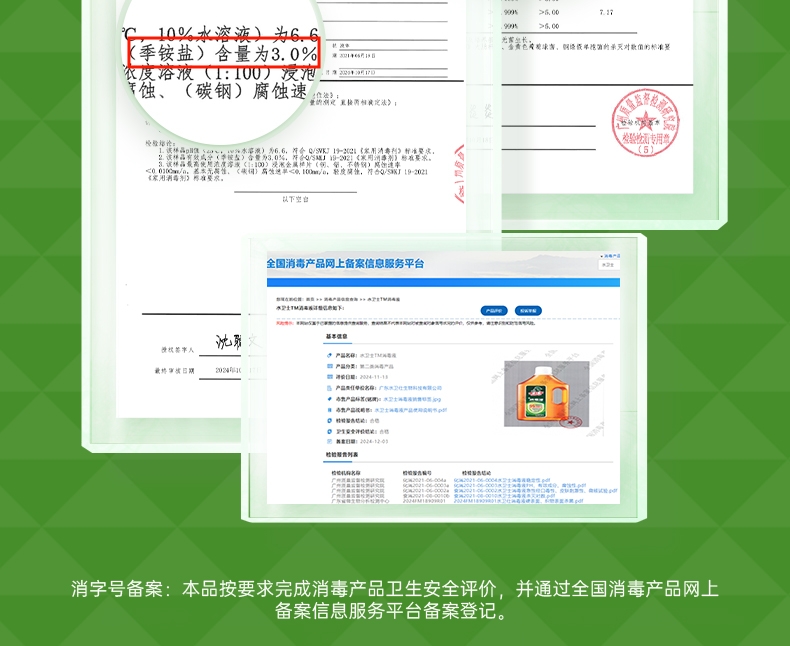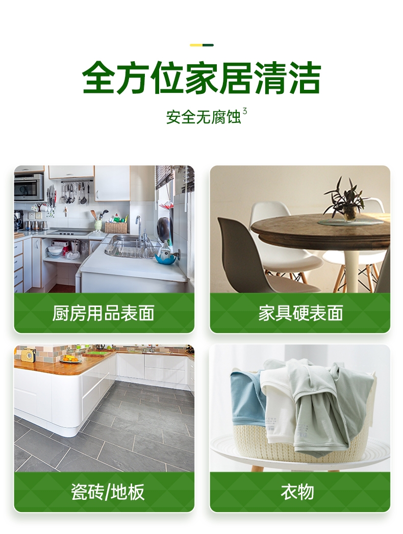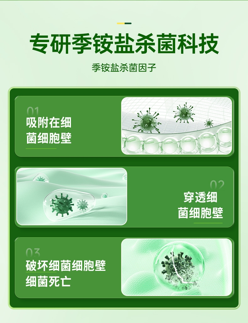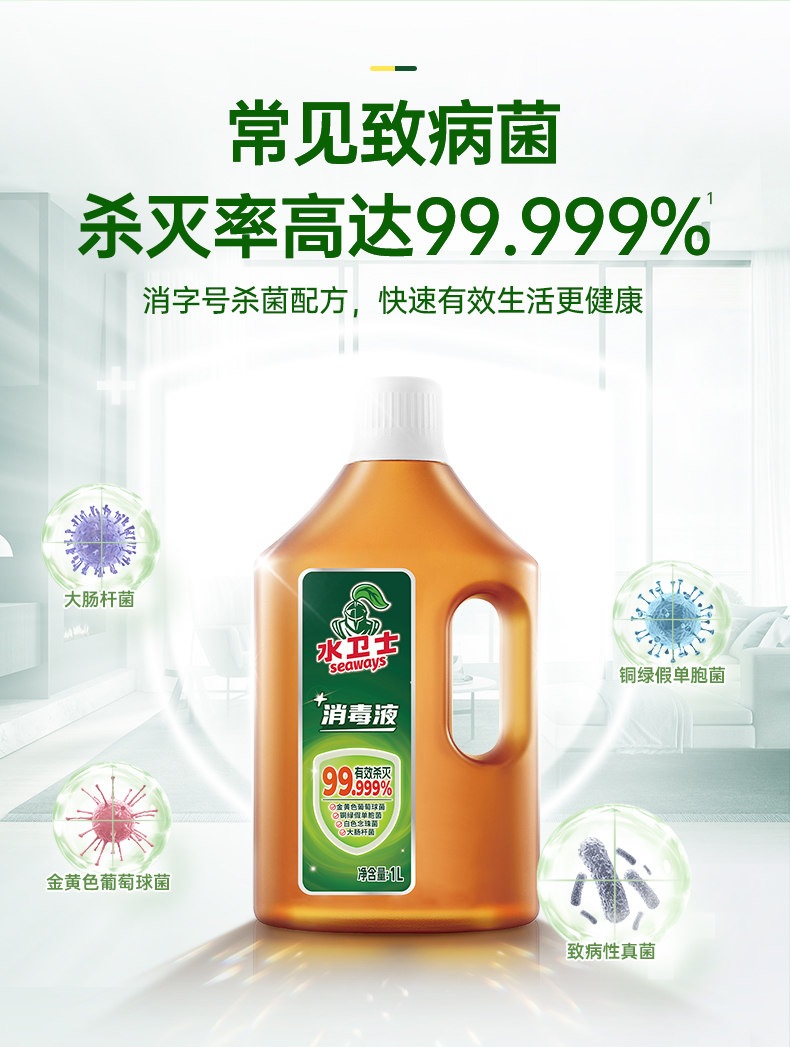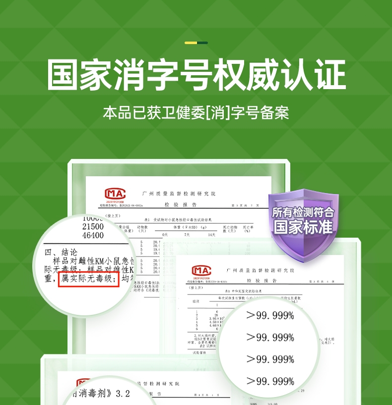 一瓶搞定全屋消毒清洁 国家消字号权威认证;杀菌率达99.999%;对皮肤无刺激无伤害,母婴更放心;安全助洗衣物,无残留无毒不刺激;无毒不刺激 季铵盐配方 ,轻松过水易漂洗,环保更安
