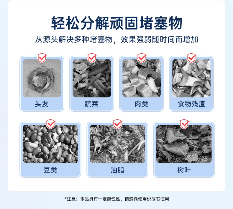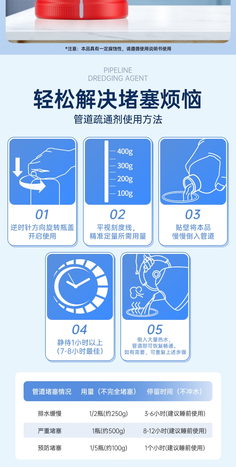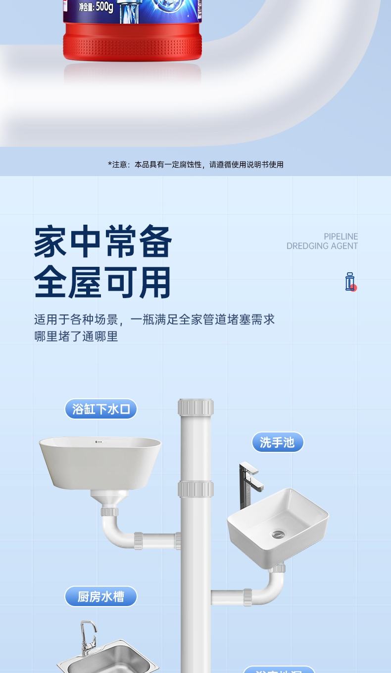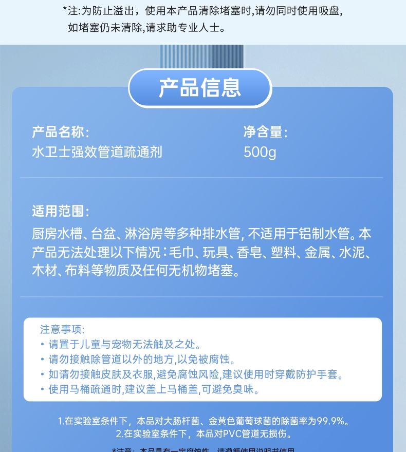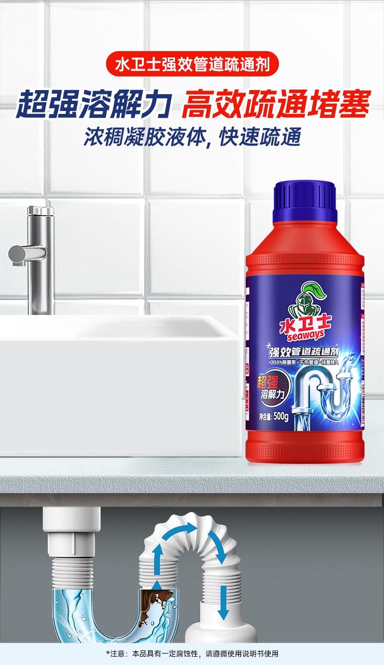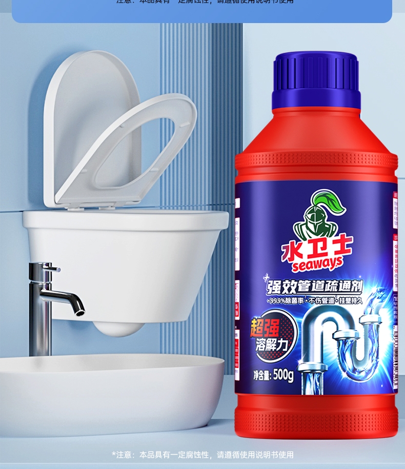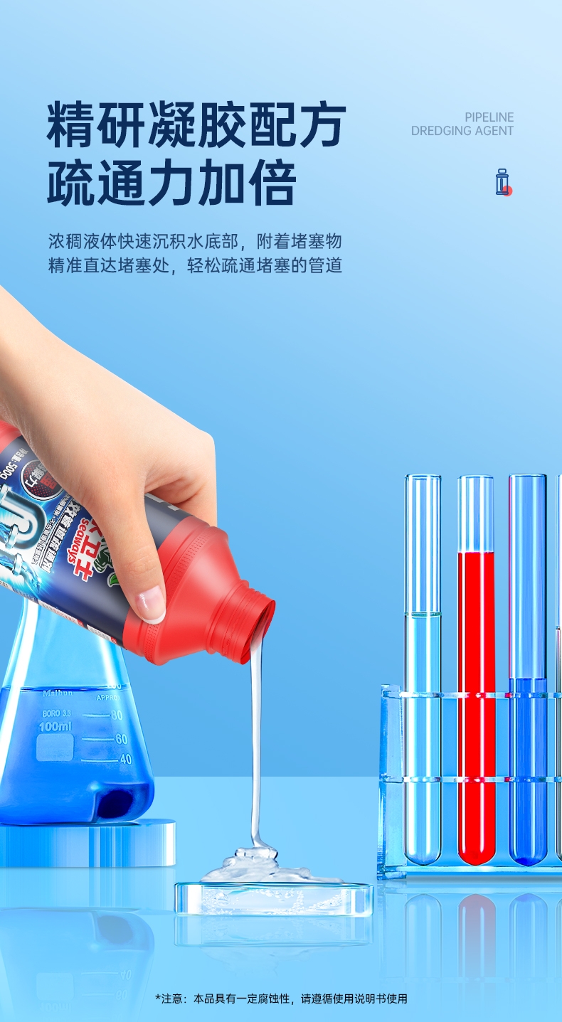添加高效疏通因子+先进挂壁技术;除菌率99.9%,有效除菌、除味、减少害虫;创新定量瓶型,科学定量使用;用量灵活,轻松操作;适用于多种形状和大小的下水管道口