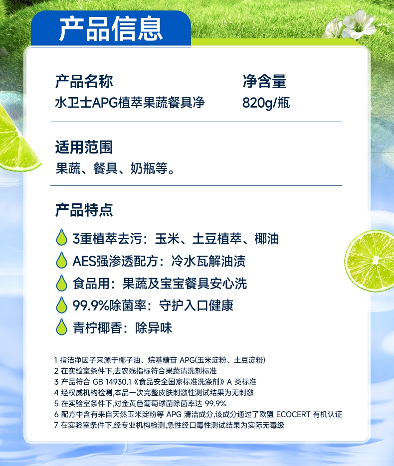 水卫士 APG植萃果蔬餐具净820g/瓶