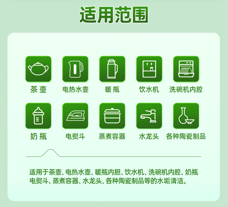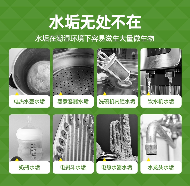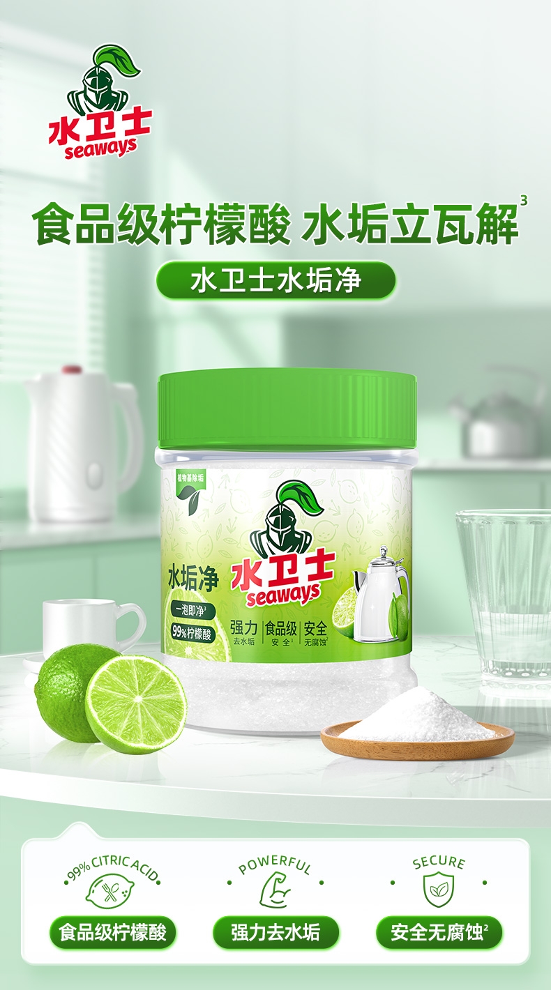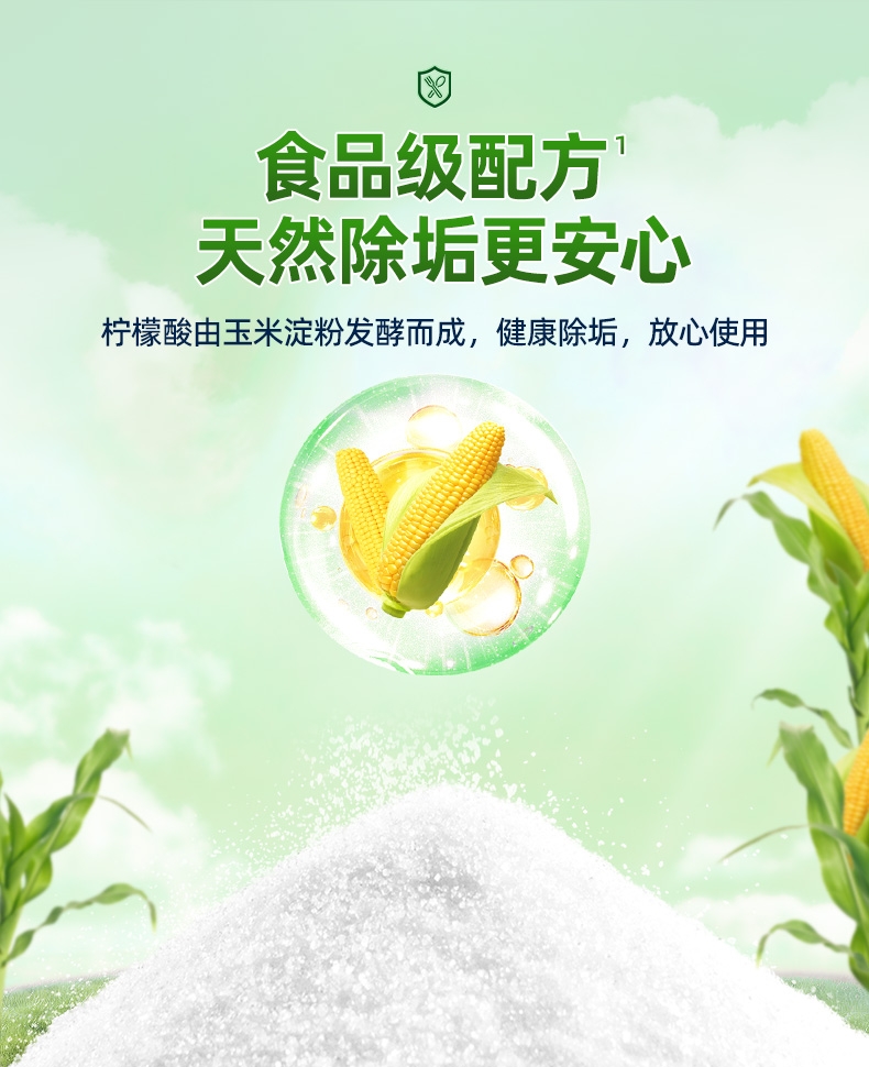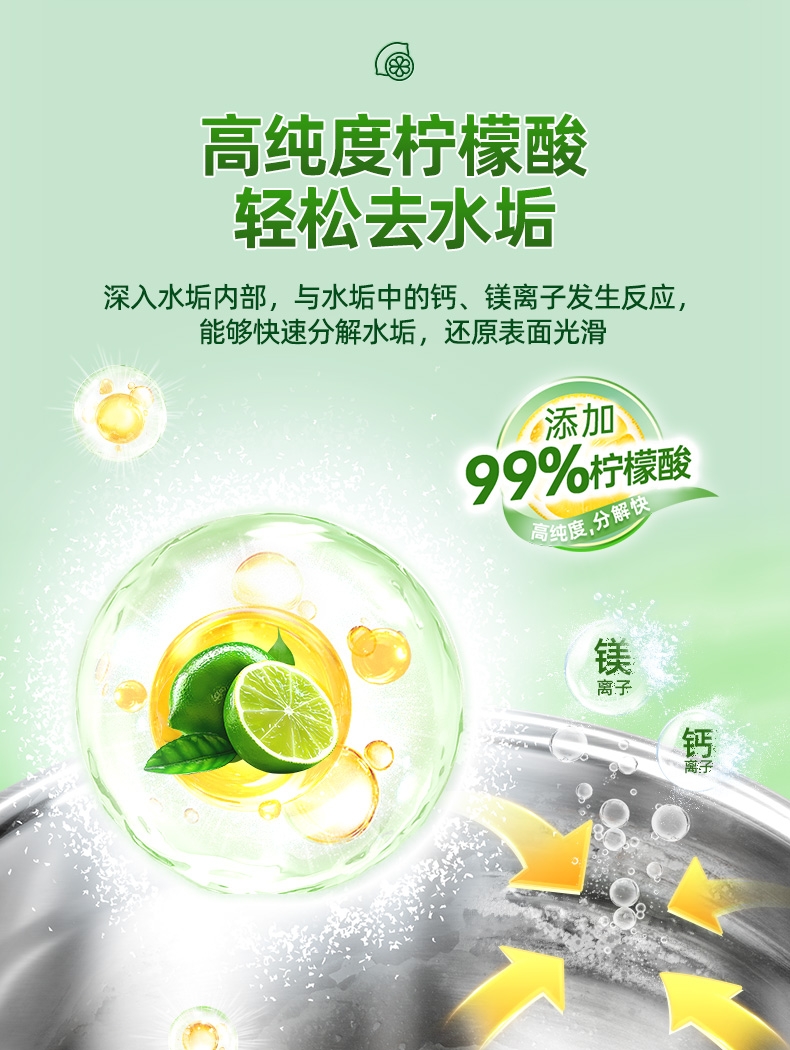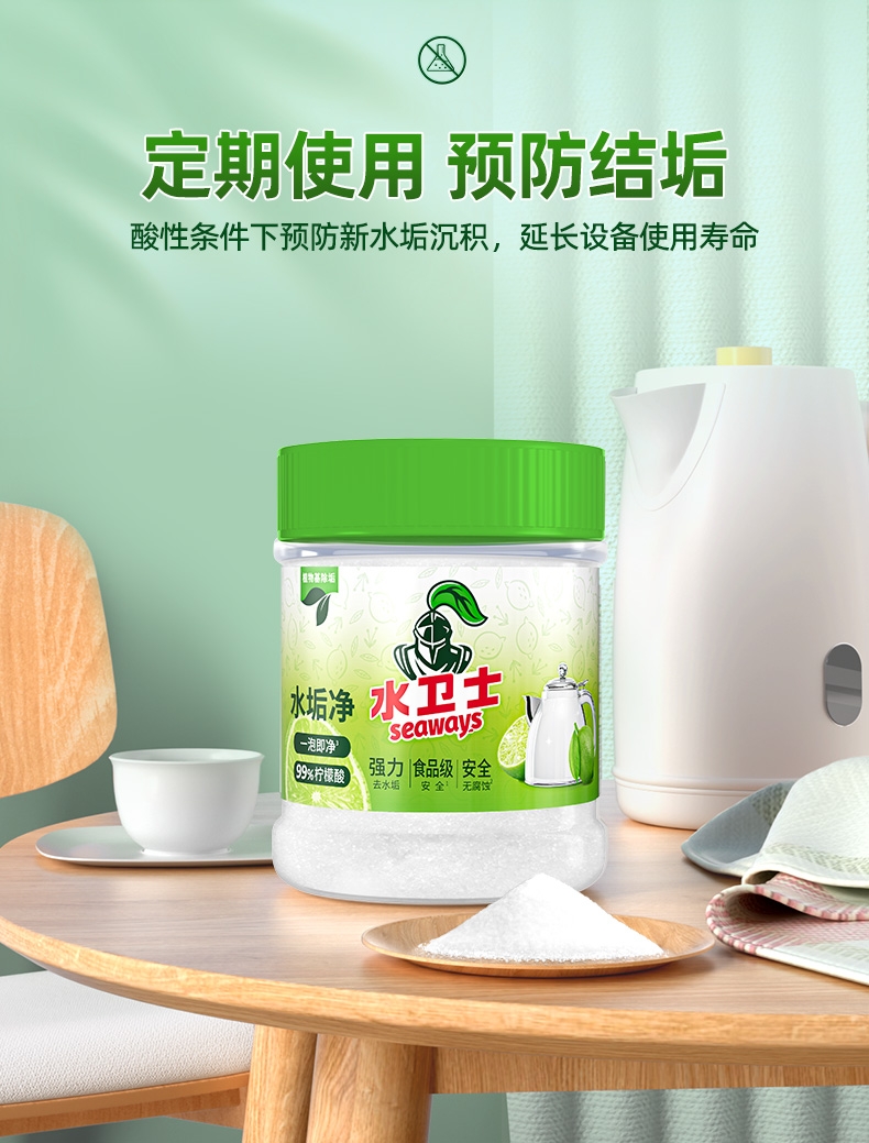高纯度柠檬酸,轻松去除水垢;一瓶多场景适用;食品级配方,安心除水垢;温和清洁,安全无腐蚀