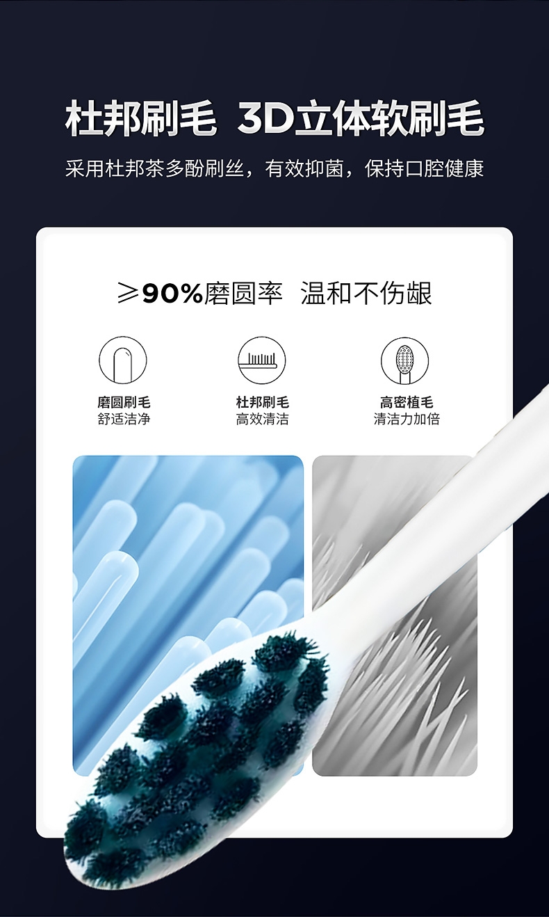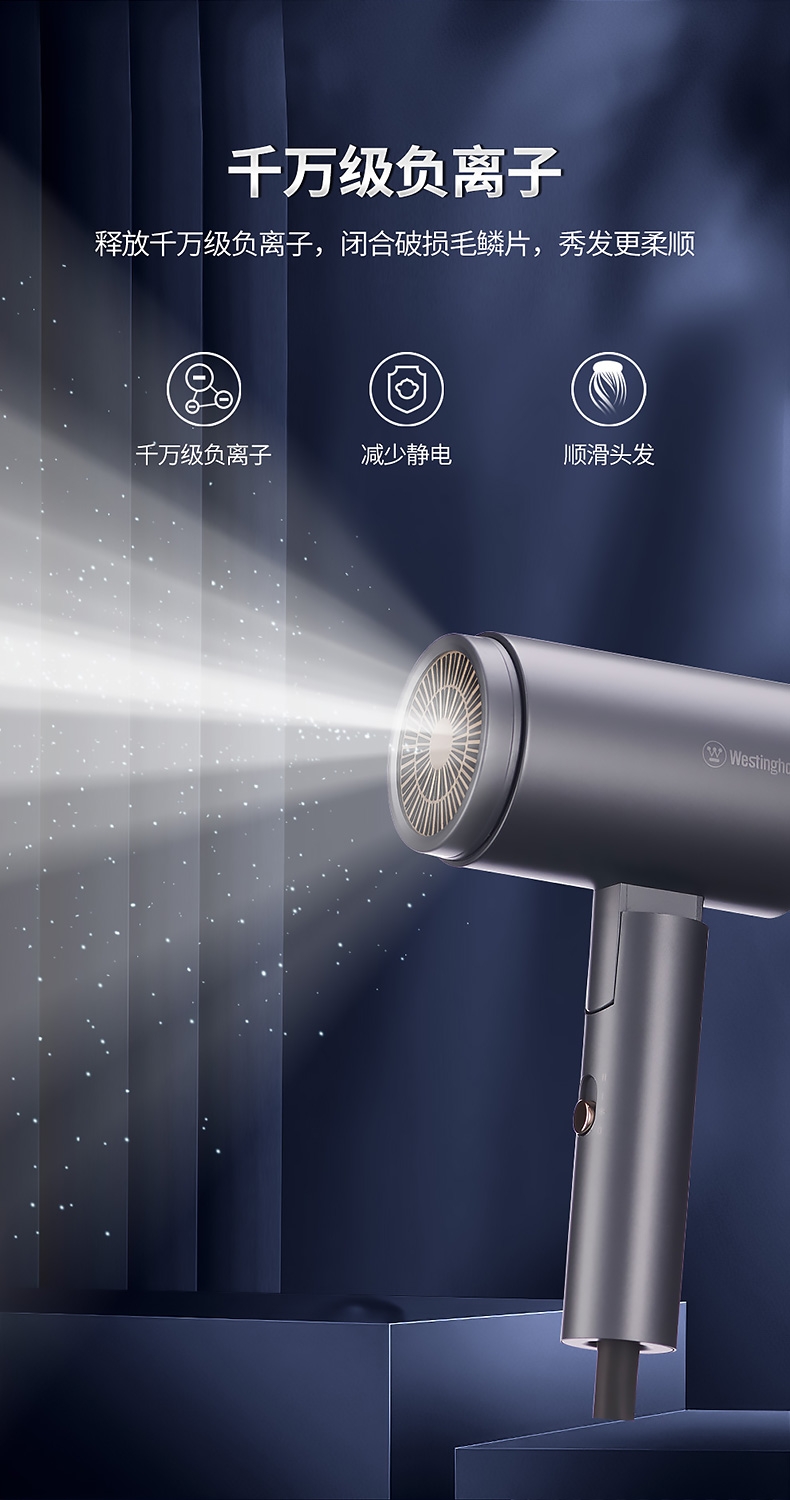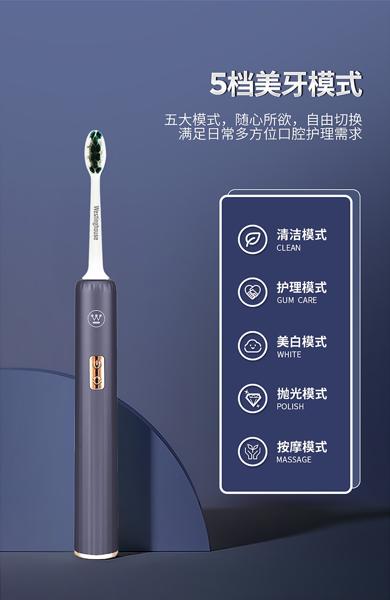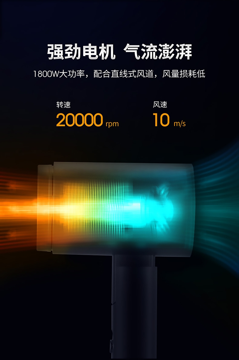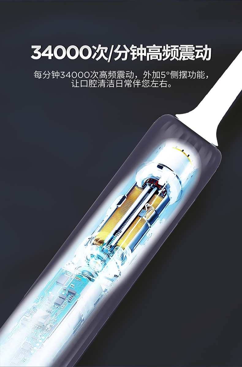 1800W大风快速干发;千万级高浓度负离子,护发养;34000次/分高频声波清洁;五种美牙模式