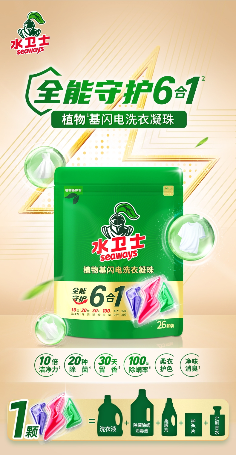 水卫士 植物基闪电洗衣凝珠8克/颗(三腔闪电)*26/袋