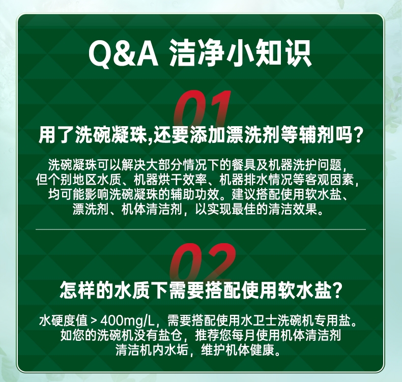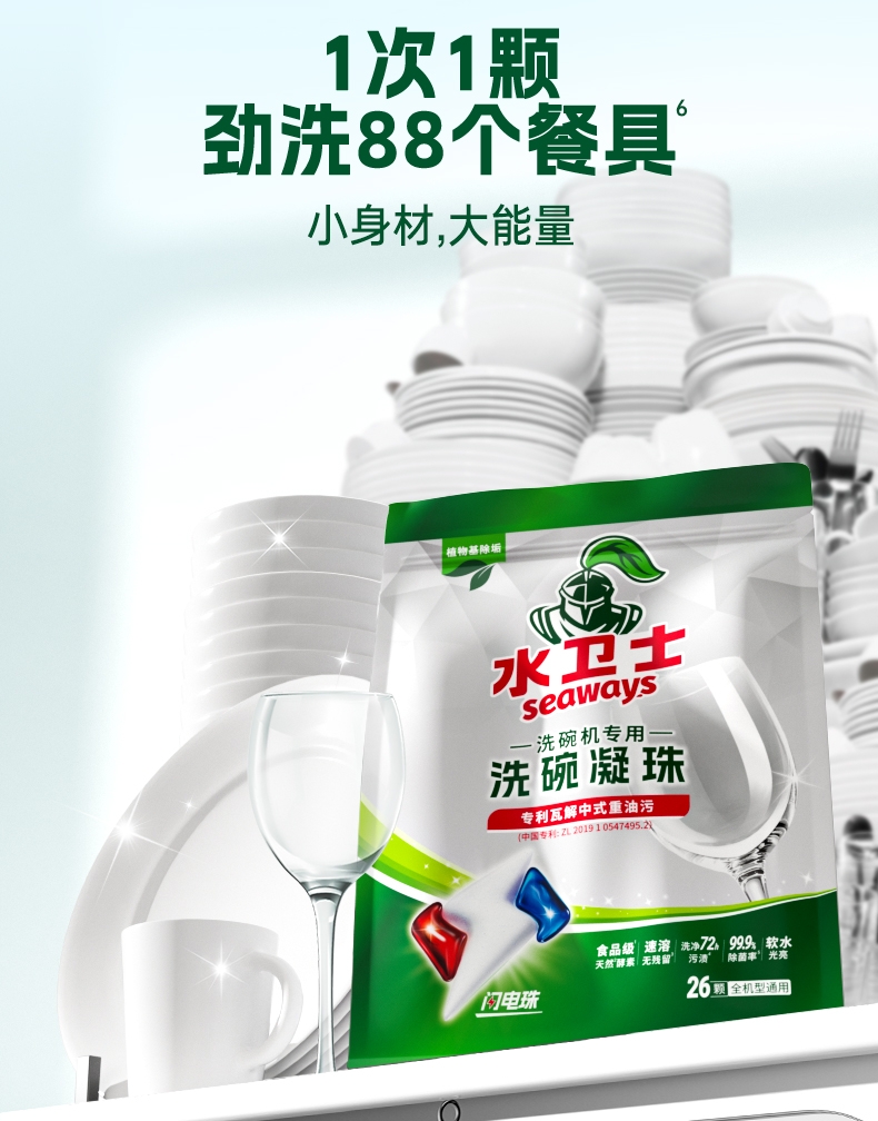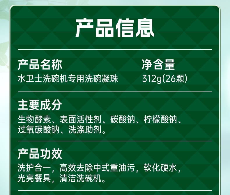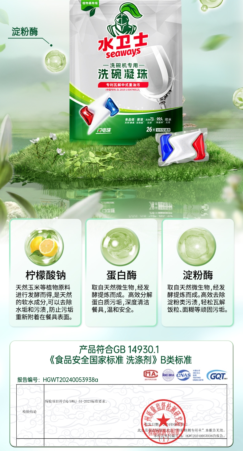 速溶配方,快洗超净;凝胶形态,溶解迅速;食品级1天然2酵素洁净配方;团灭入口害菌,除菌率99.9%;