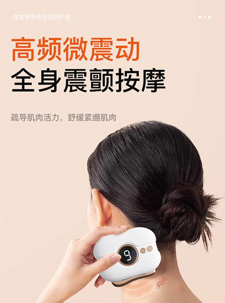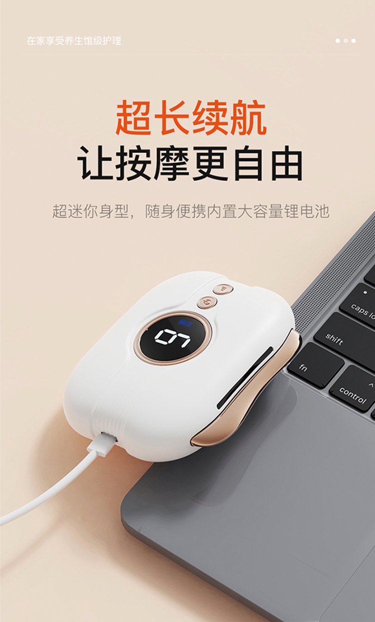 精致小巧,居家日用, 外出携带都无惧挑战,随时享受;多档调节,多款按摩头专业级呵护,升级四大按摩头细心