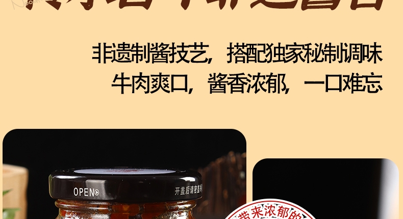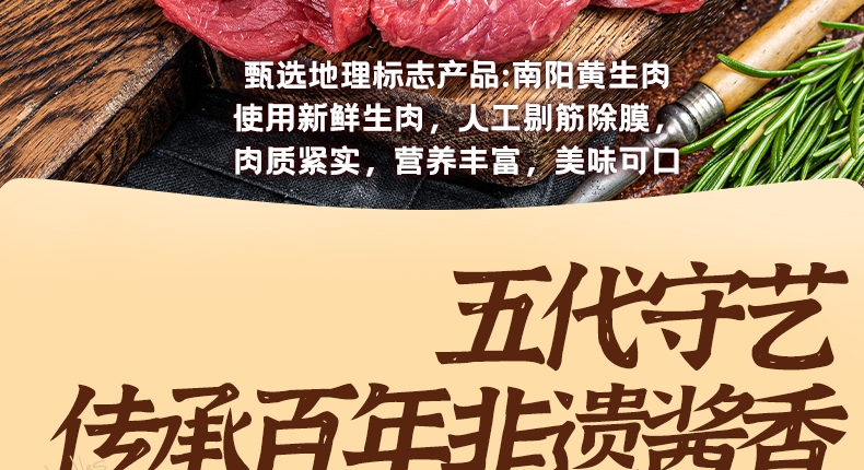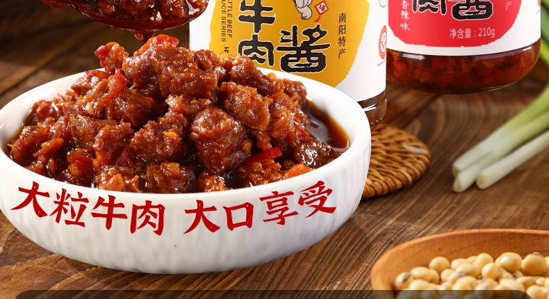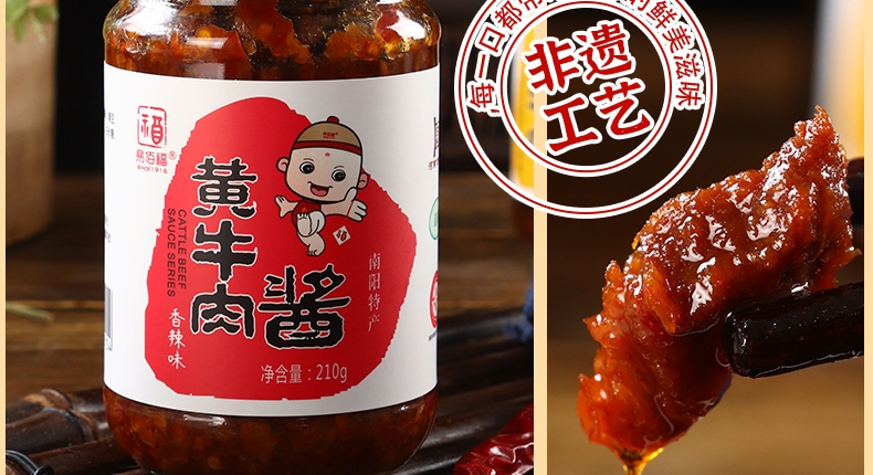 清真食品;河南老字号;南阳非物质文化遗产牛肉酱;精选南阳黄牛,厚切大块牛肉,粒粒分明