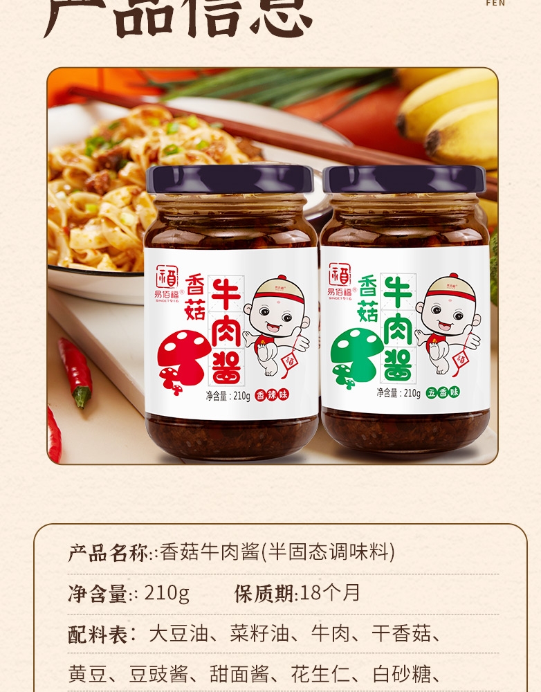 易佰福 清真【河南老字号】拌面酱拌饭酱辣椒酱蘸料香菇酱