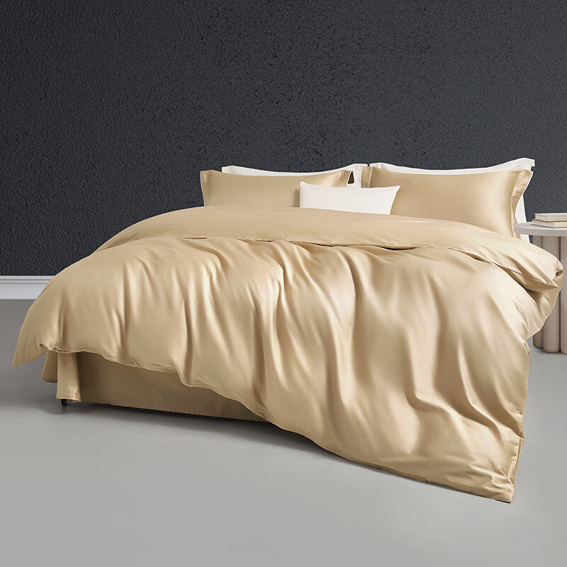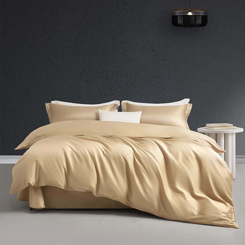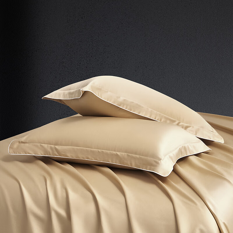 选用优质新疆长绒棉,不易起球;面料柔软平整,亲肤细腻;精简的四件套组合,短枕大气