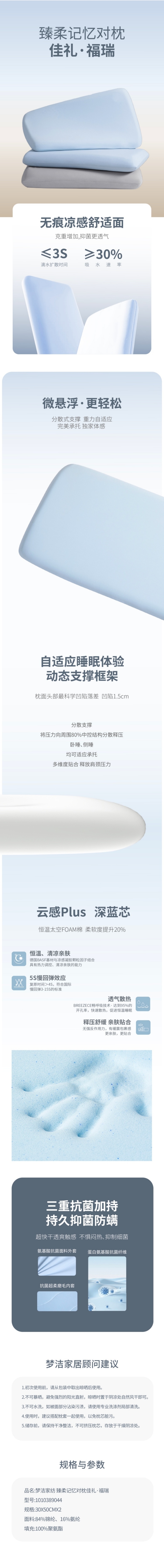 记忆棉枕芯温柔包裹头颈,压力均匀分散;记忆棉都能智能贴合你的曲线,填补颈部悬空;