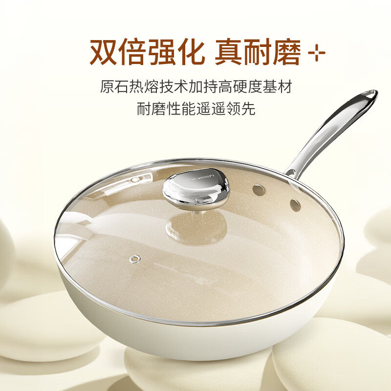 温仑山 -鹅卵石系列不粘炒锅(玻璃盖款)