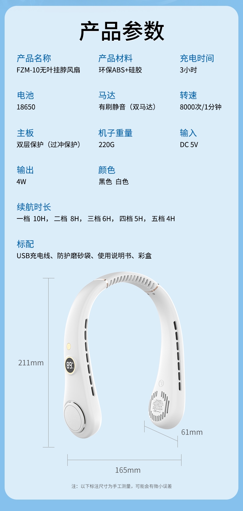 思薇科林 无叶挂脖风扇小型便携式FZM-10