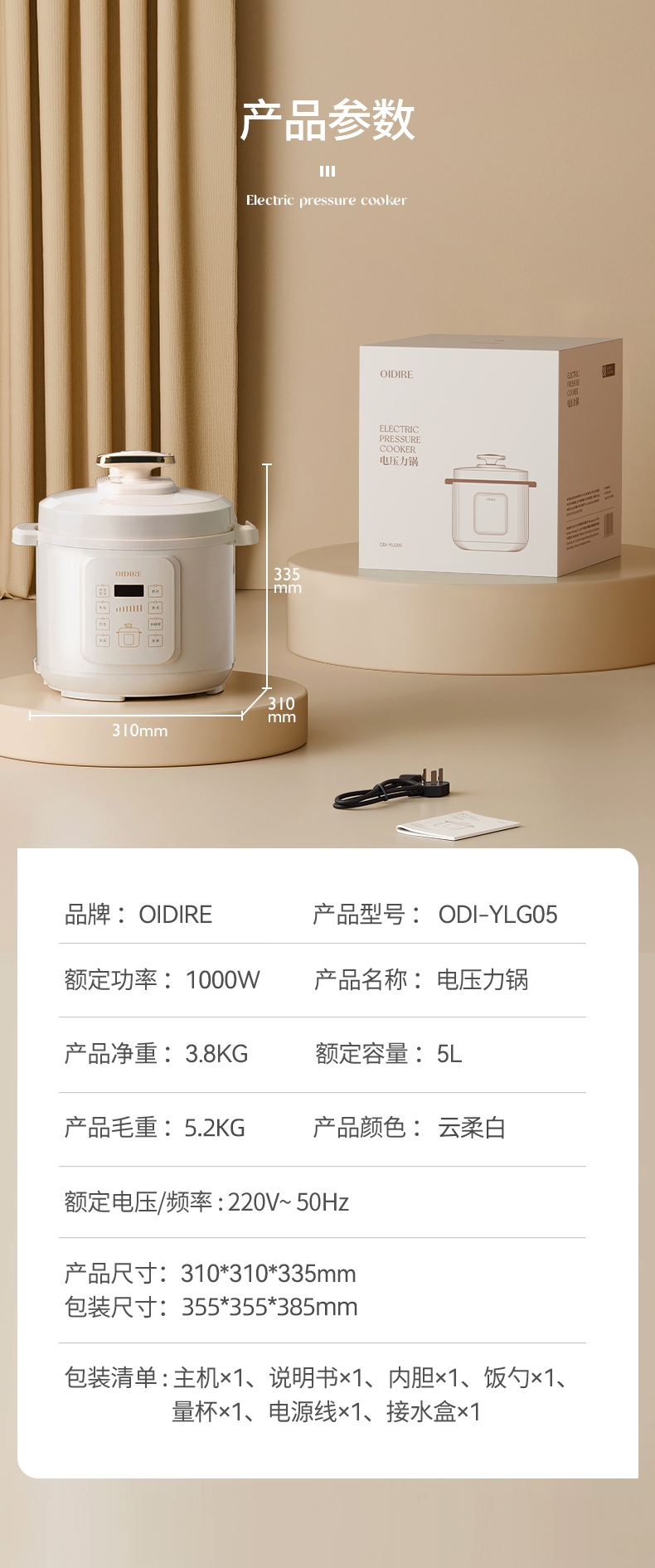 配置清单:电压力锅*1 说明书*1