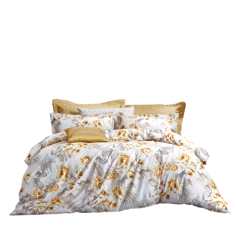 配置清单:【产品材质】100%纯棉【产品规格】 被套203*229cm*1件 床单230*240cm*1件 枕套74*48cm*2件 【产品重量】毛重约2.8kg 净重约2.3kg 【包装尺寸】翻盖礼盒55x35x8cm 【每箱数量】5套