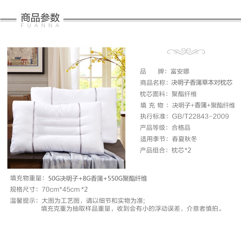 配置清单:【产品面料】压花面料(聚酯纤维 ) 【产品填充】608g*2(决明子50g+香蒲8g+聚酯纤维550g) 【产品规格】70*45cm*2 【产品重量】毛重约1.7kg 净重约1.6kg 【包装尺寸】无纺布袋精美包装(新升级) 【每箱数量】 6对
