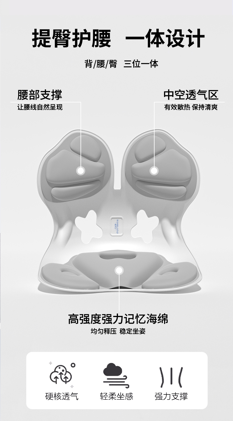 人体工学护腰坐垫,护腰、直背、塑臀三合一放松解压;;矫姿美臀,一体式支撑区分包裹;