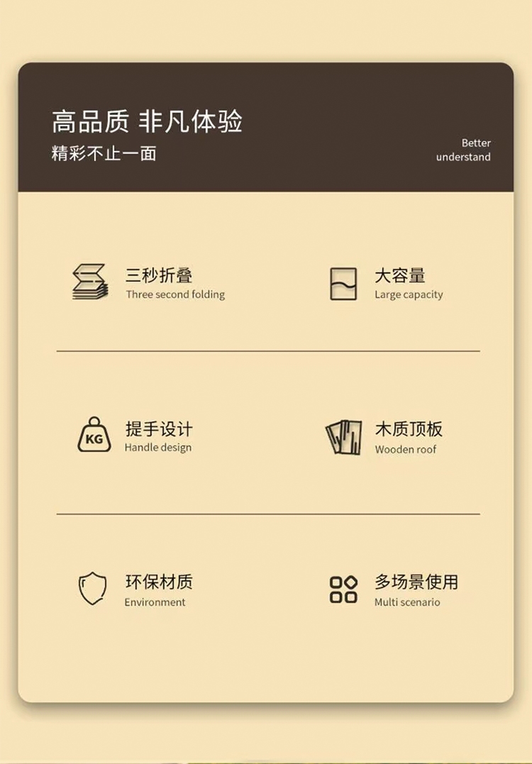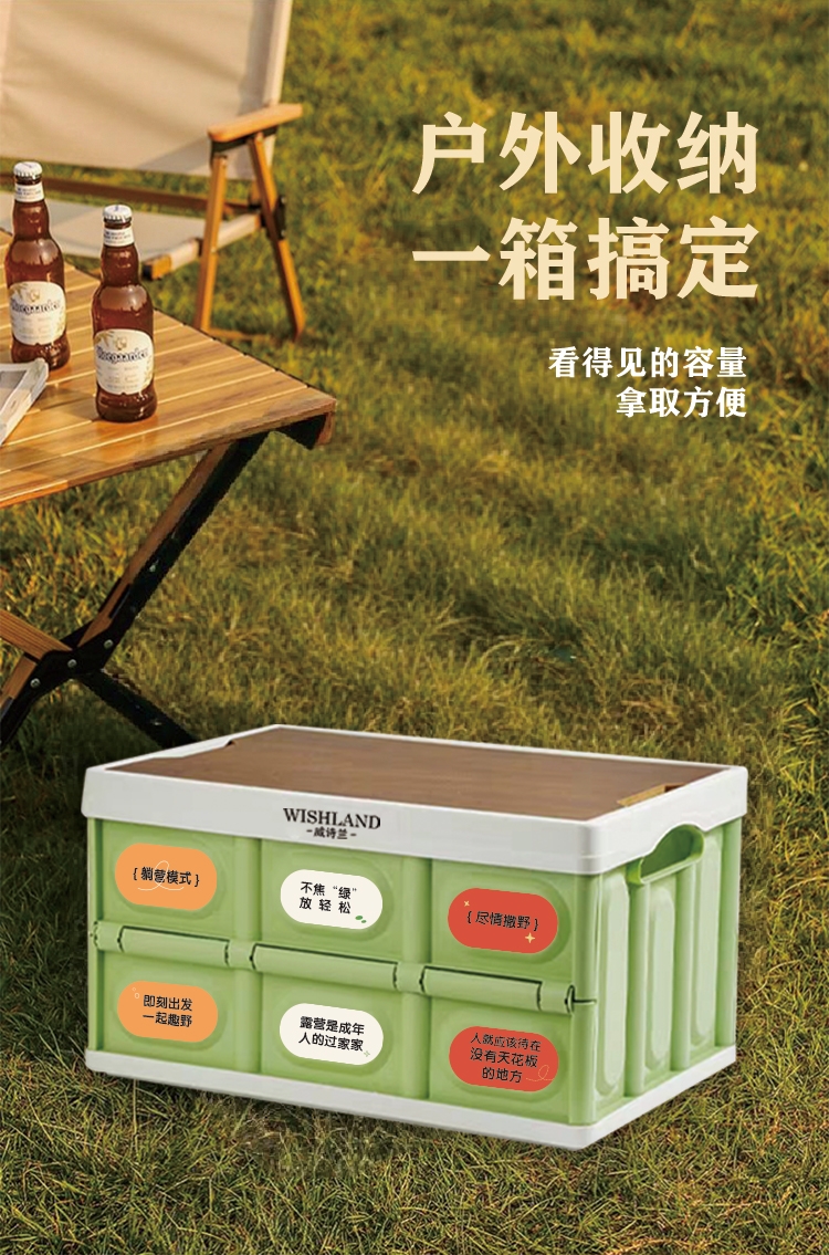快速折叠收纳,使用方便,不占空间;;可收纳户外露营各种装备和食物,两端隐藏提手,设计方