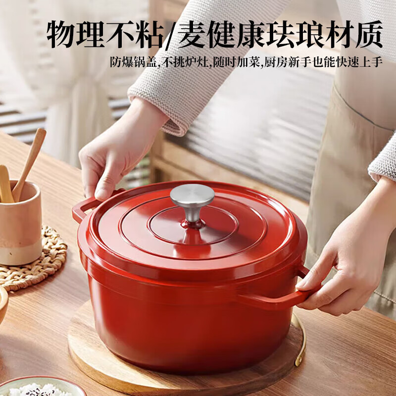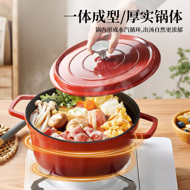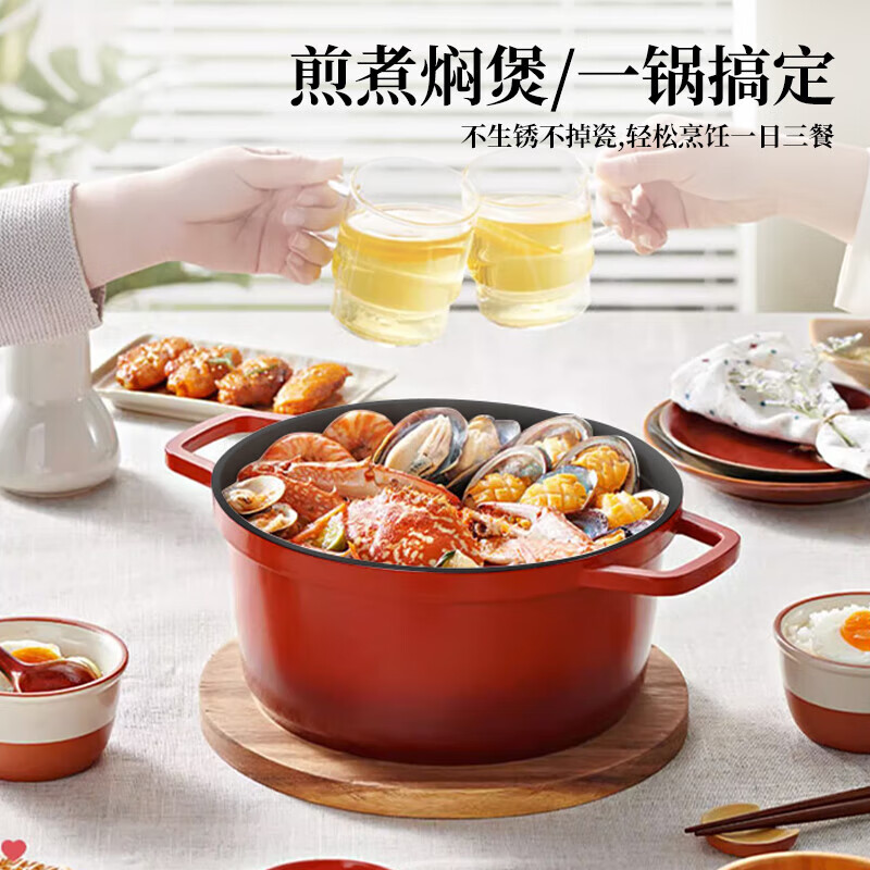 精选优质铁基材,锅体采用独特工艺一次模压成型;独特造型优雅大方,尽享时尚烹饪生活;高级不粘涂层,省油少烟,光洁易亮,耐腐蚀