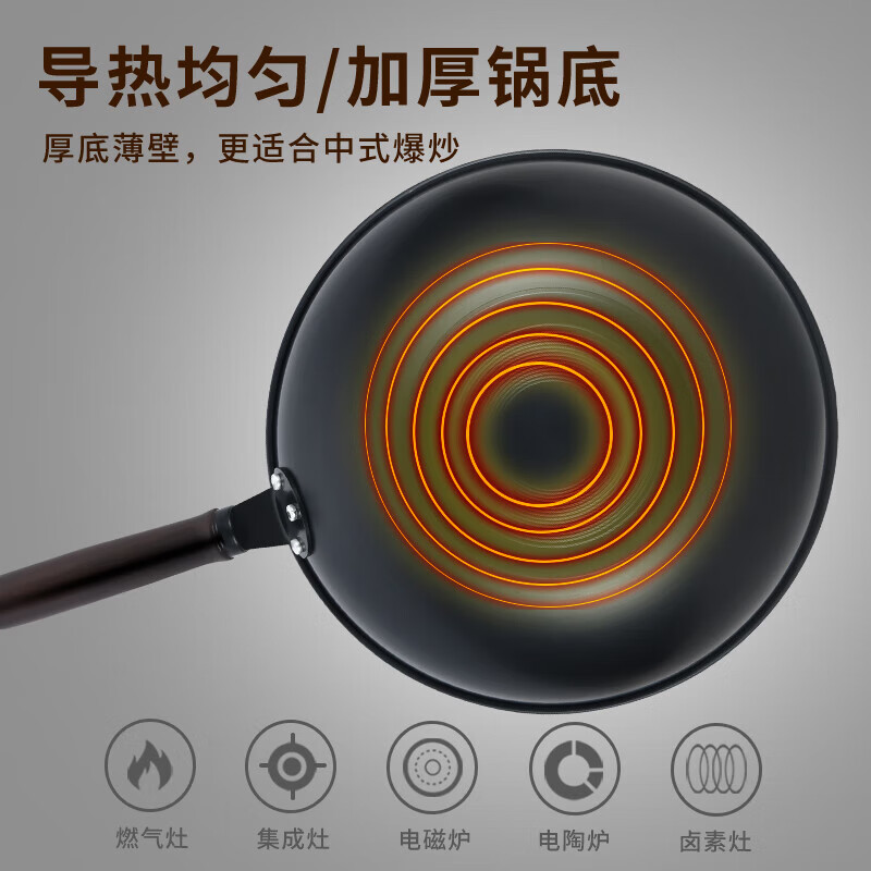 采用国家标准食品接触精铁材质精制而成;不添加任何涂层,美观大方;没有涂层,持久不锈
