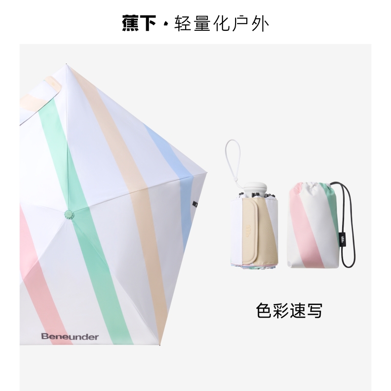 蕉下防晒伞采用L.R.C™黑胶涂层技术;大大降低晒伤、晒黑及光老化风险;轻量化便携性、时尚外观与耐用品质