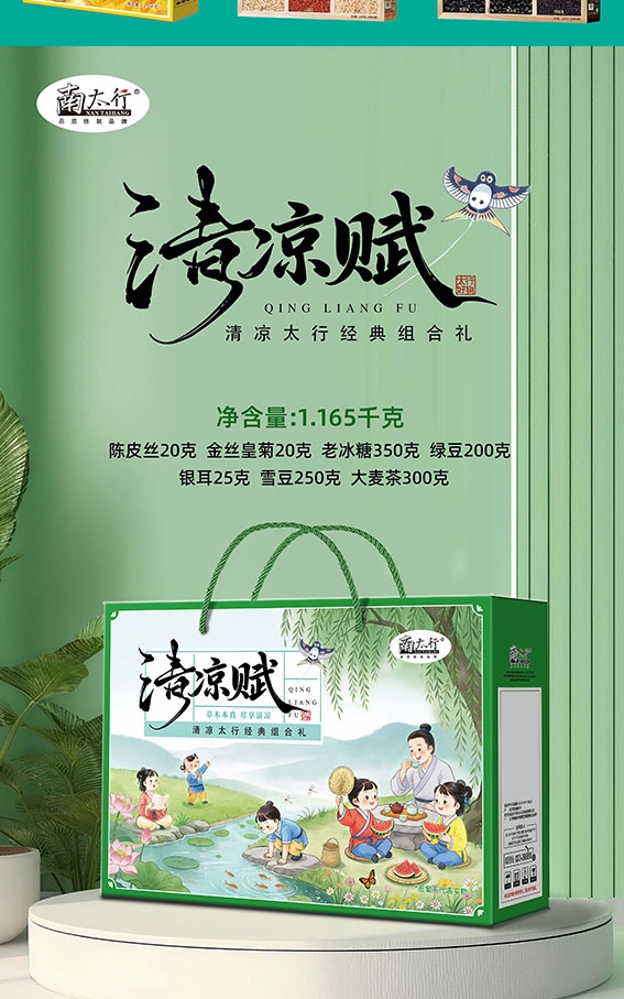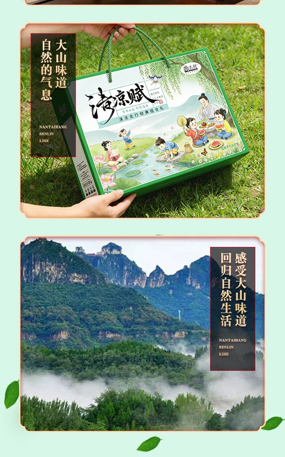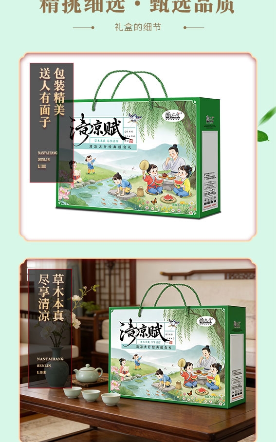 以国风插画为媒,柳丝垂溪,把太行夏日装进礼盒;内含7种清润好物;高端健康礼,就选南太行!