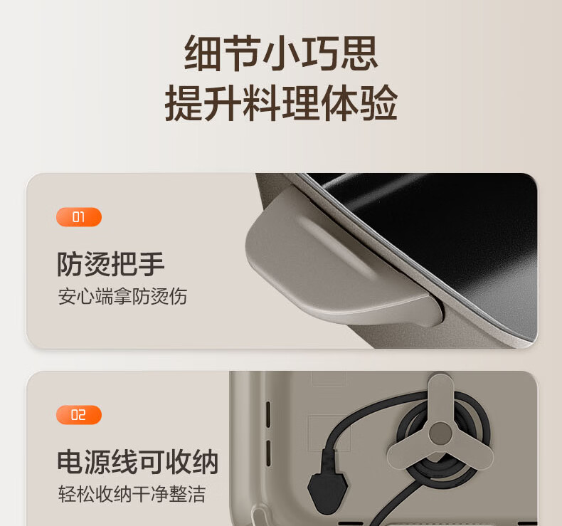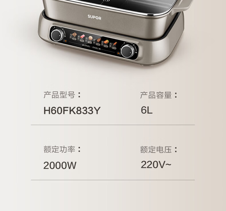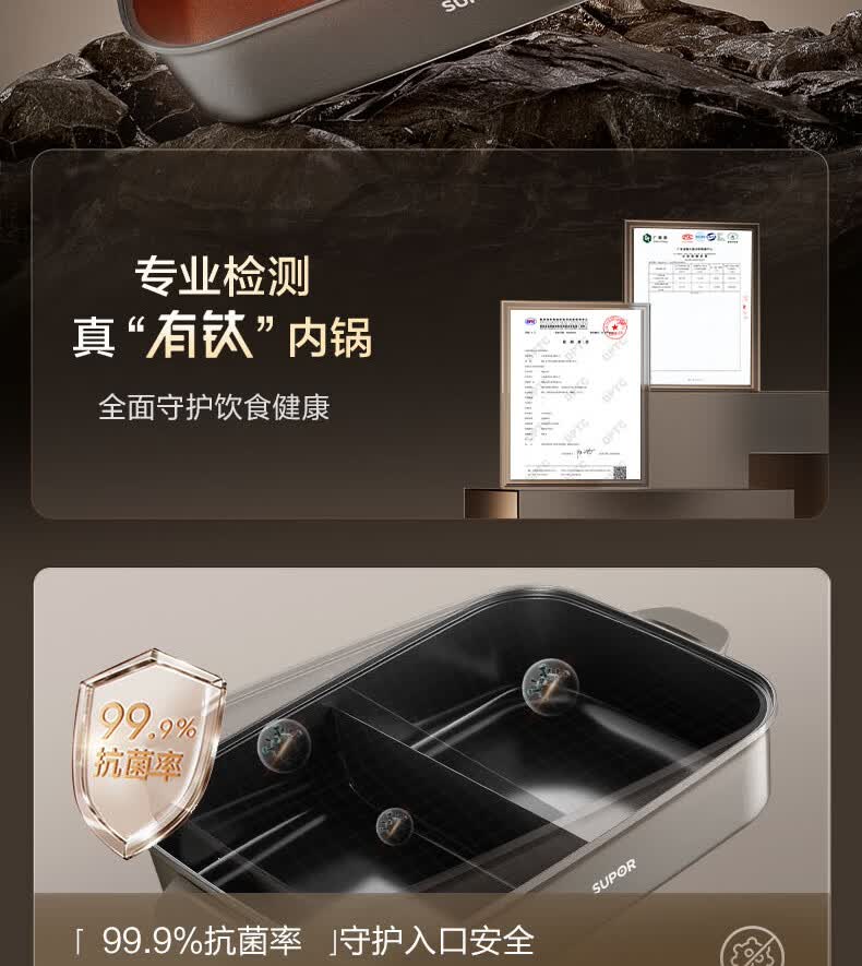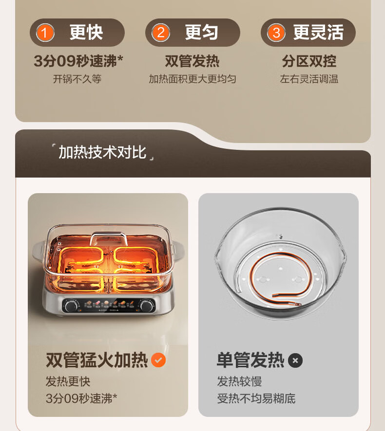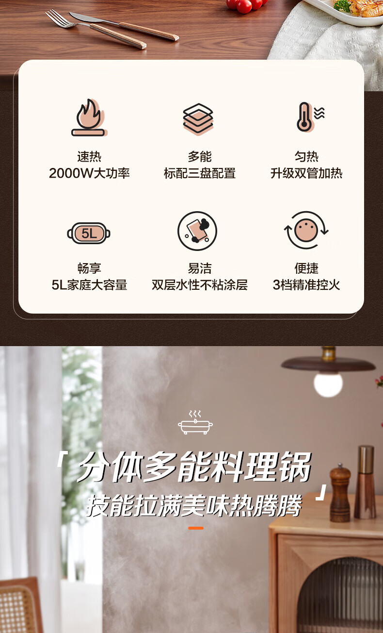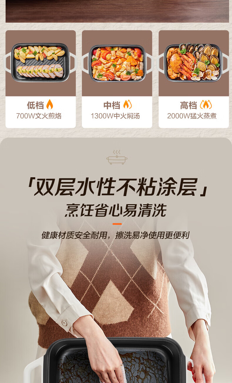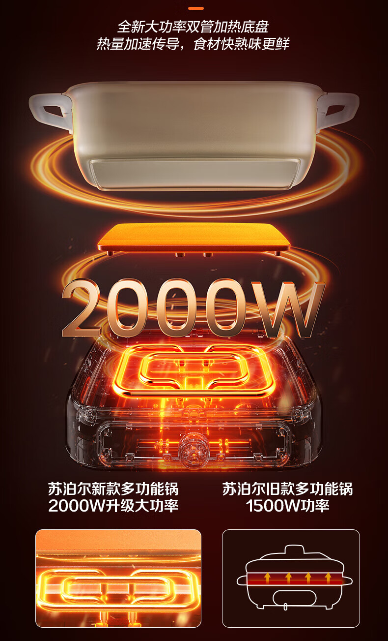 煎烤涮煮炖多功能;2000W猛火快涮;二重贴心安全保护
