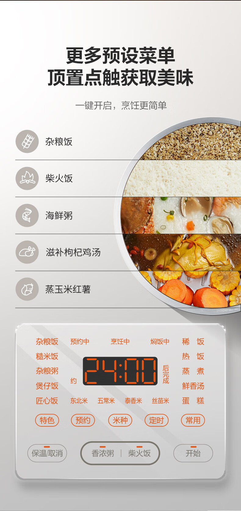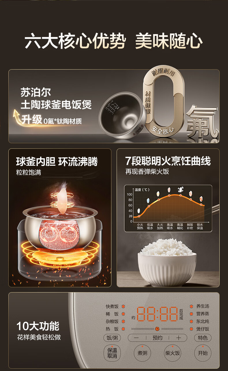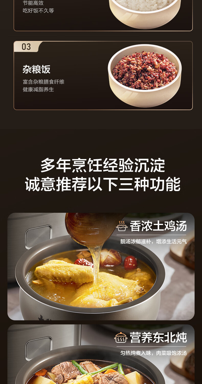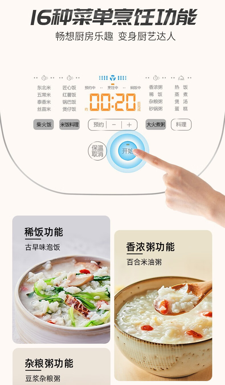 电饭煲多功能:柴火饭,煮粥,煲仔饭,热饭,快速饭